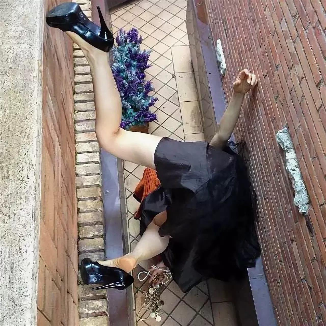 Девушка упала с лестницы гиф