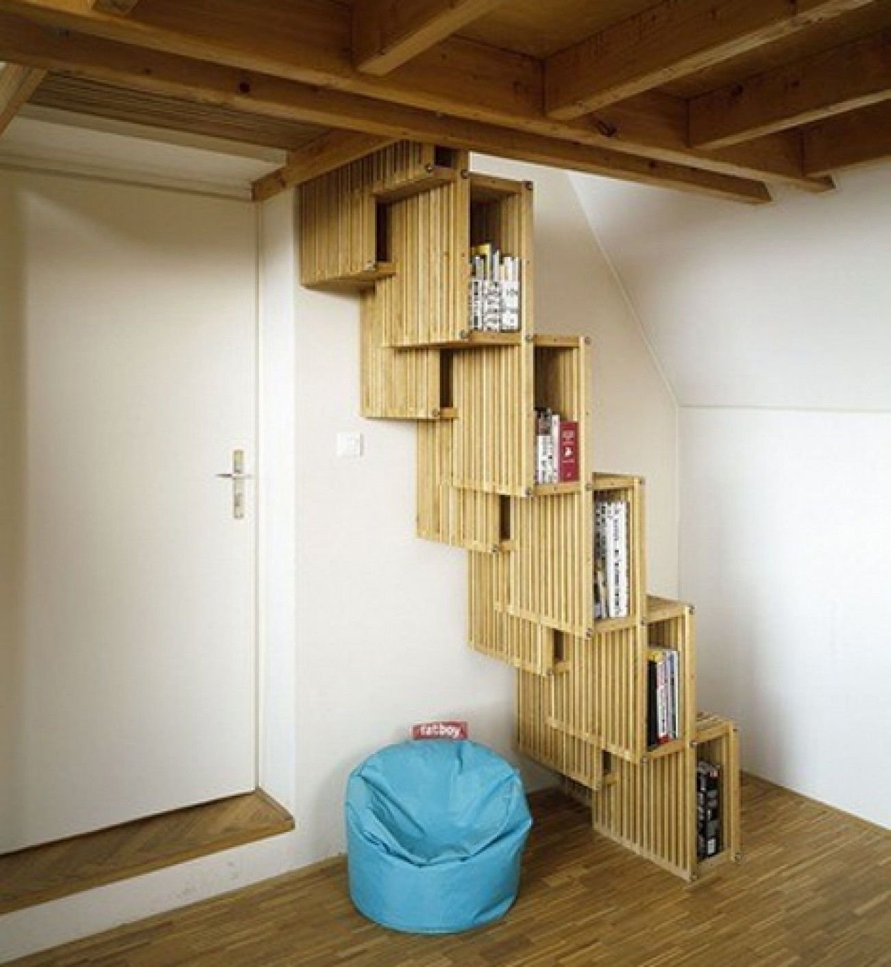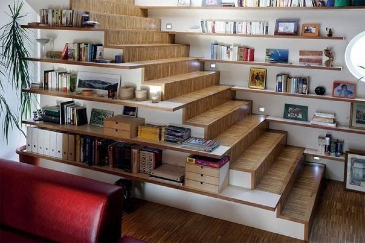 Книжный стеллаж под лестницей