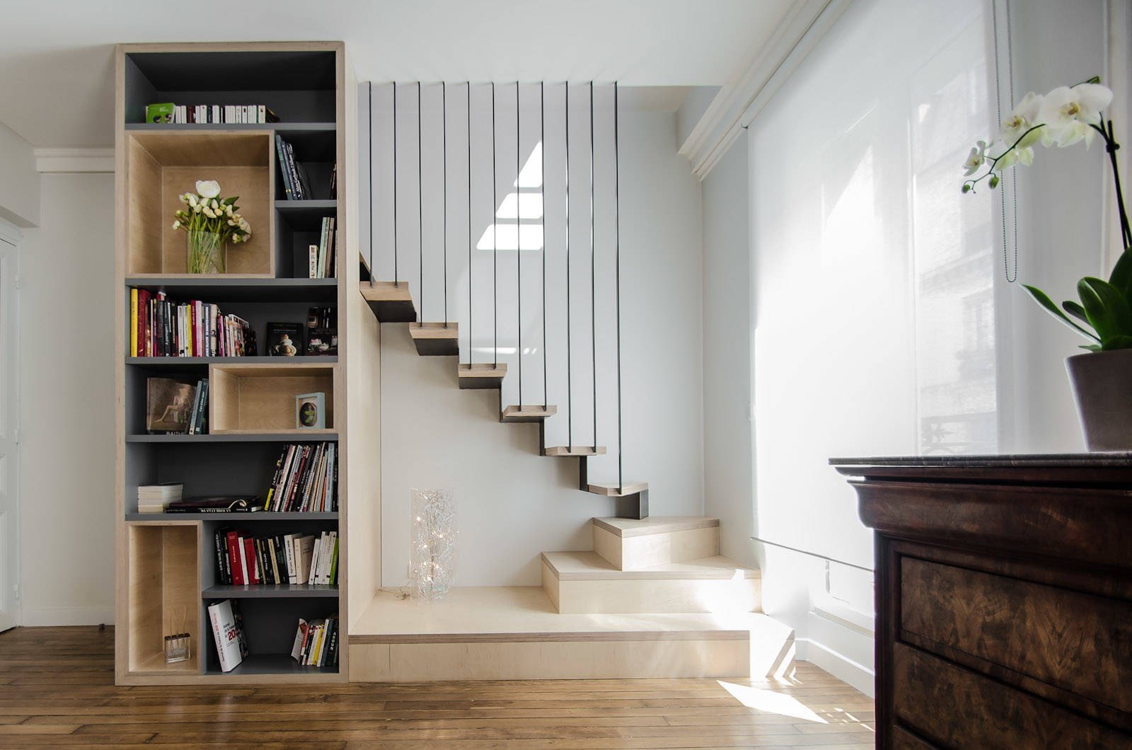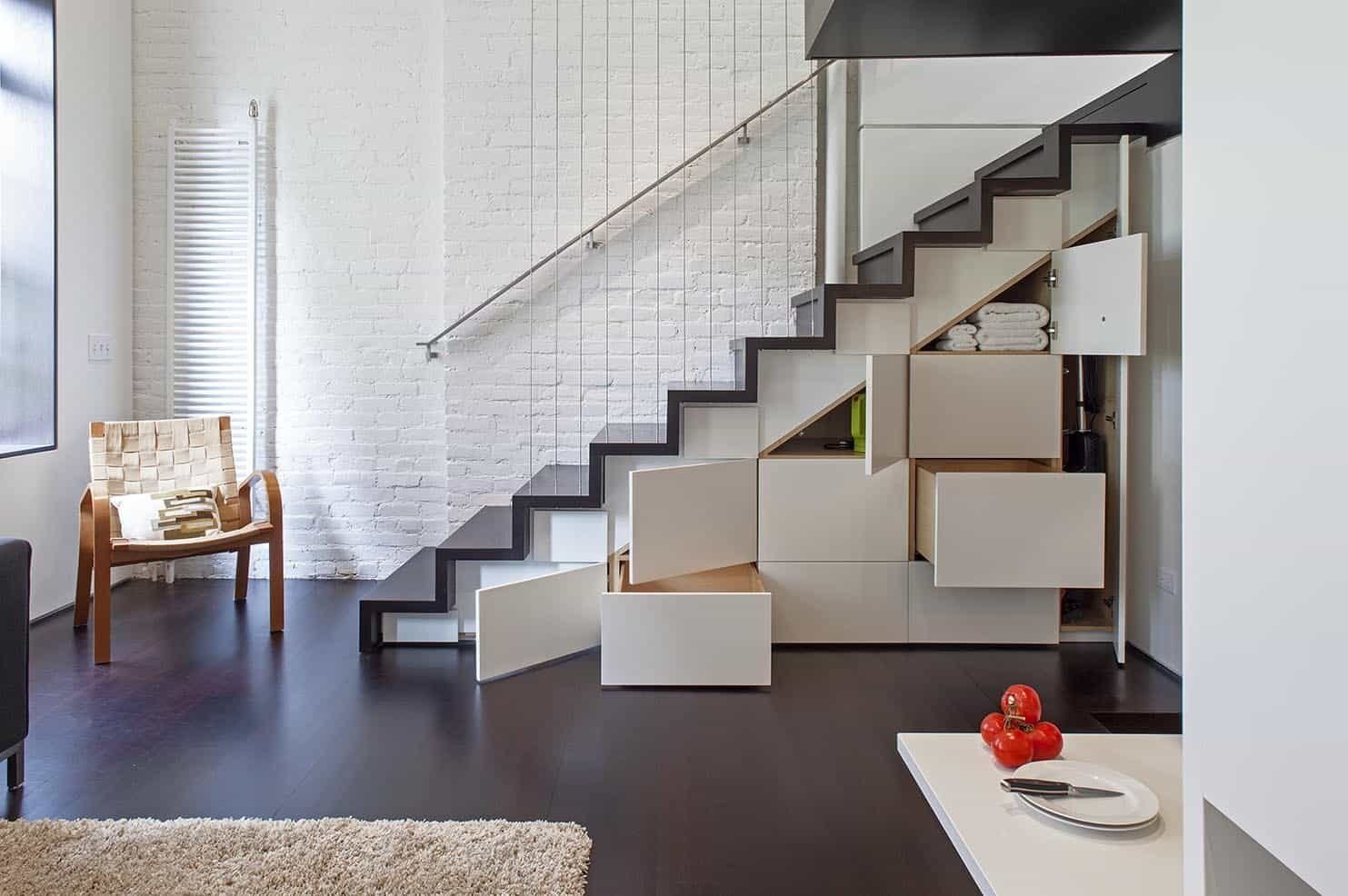 Лестница с выдвижными ящиками в ступеньках