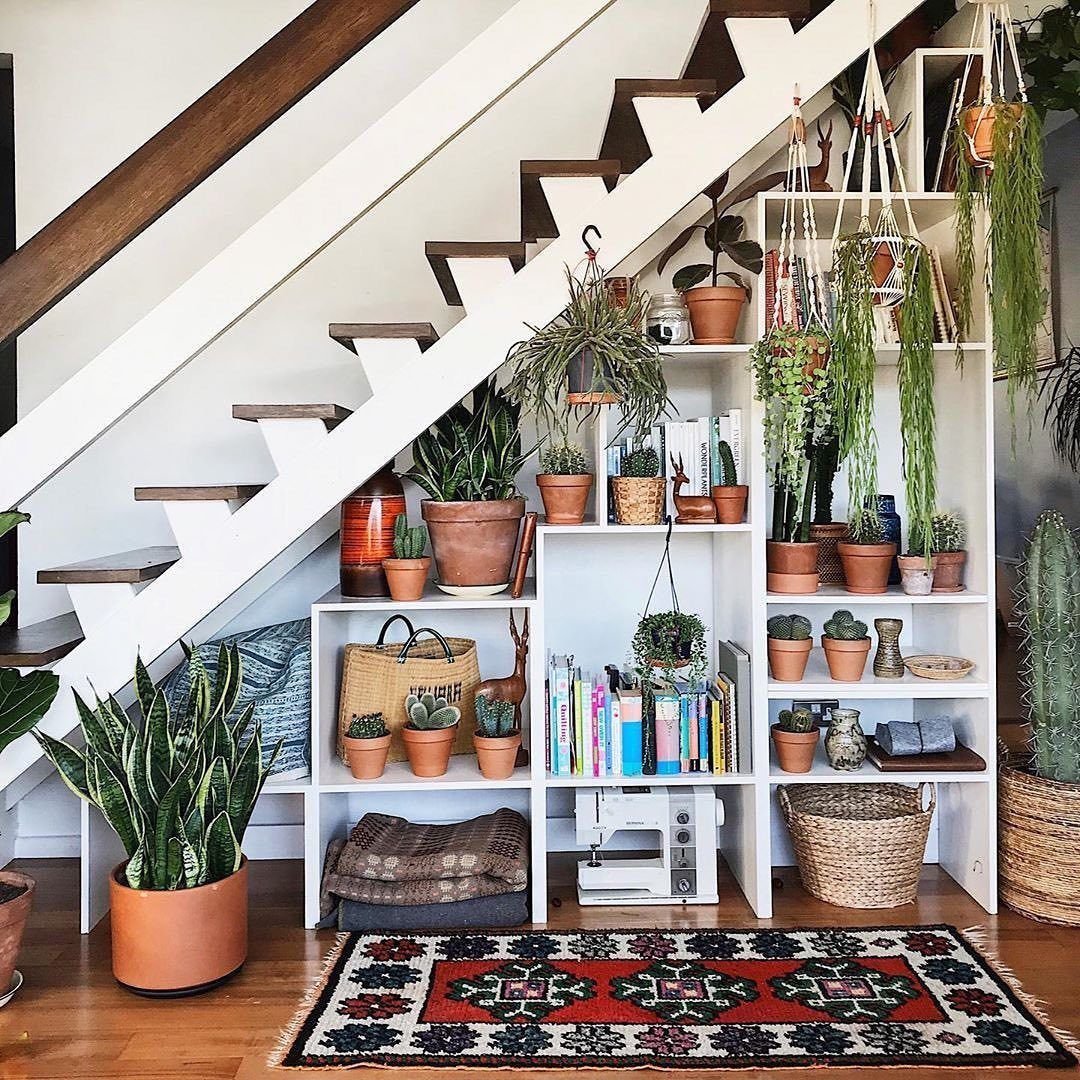 Зелень под лестницей в доме