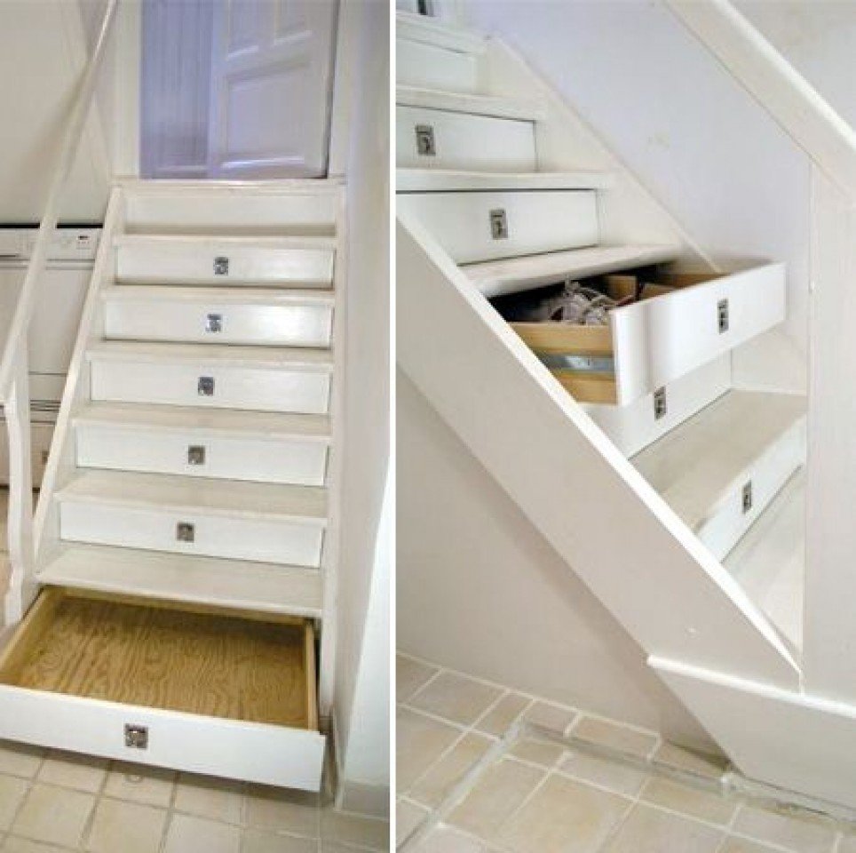 Ящики в лестничных ступеньках