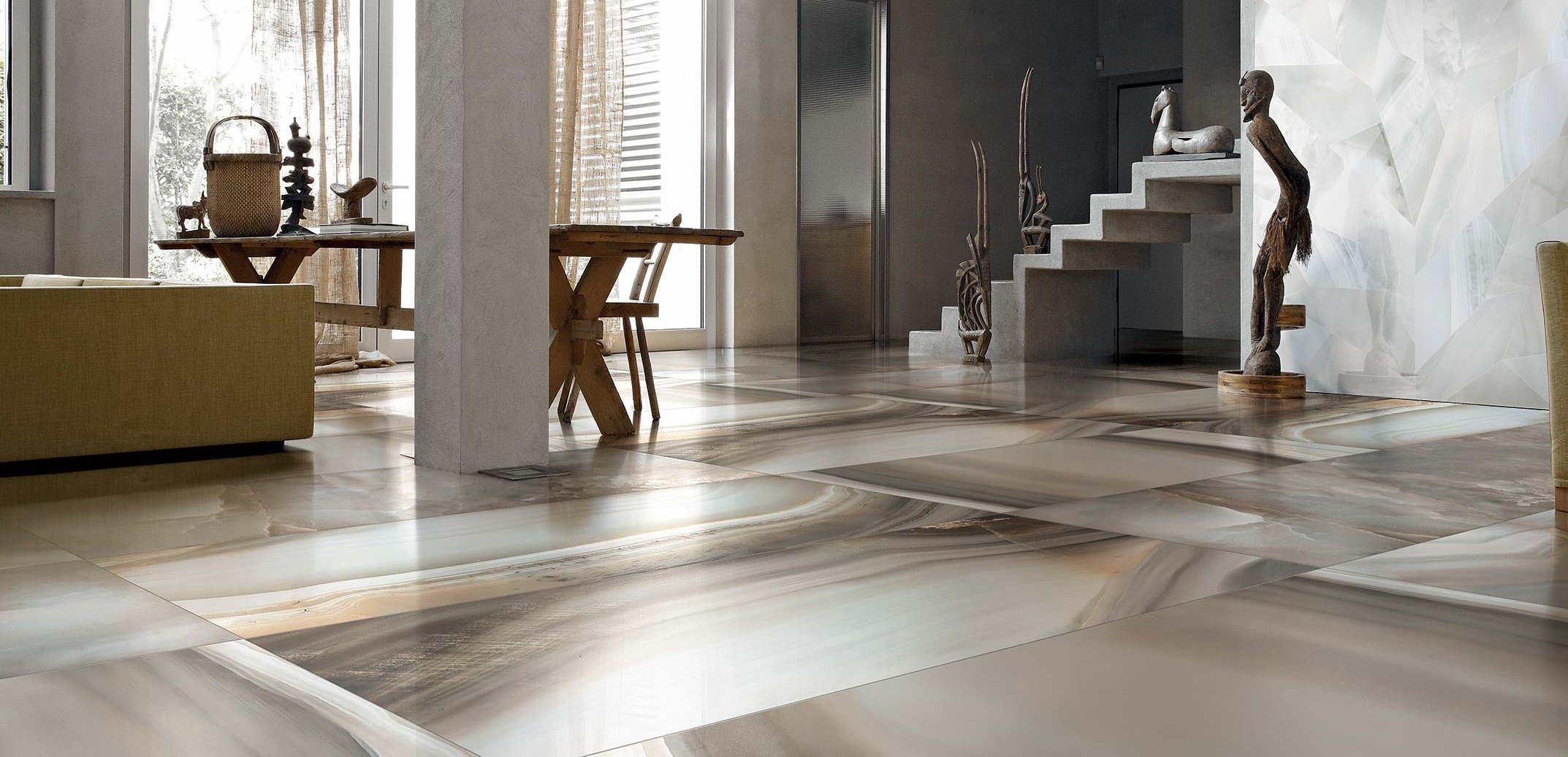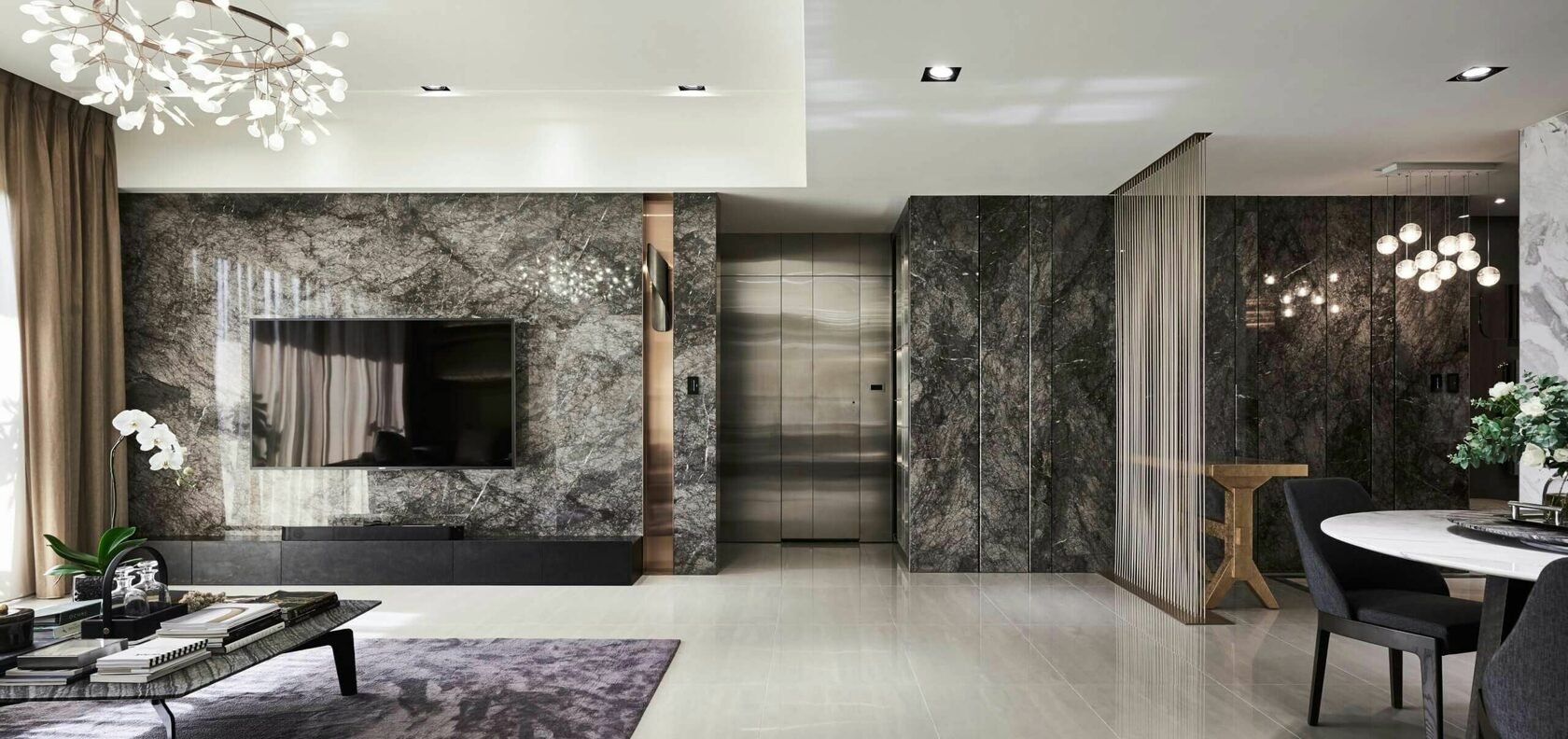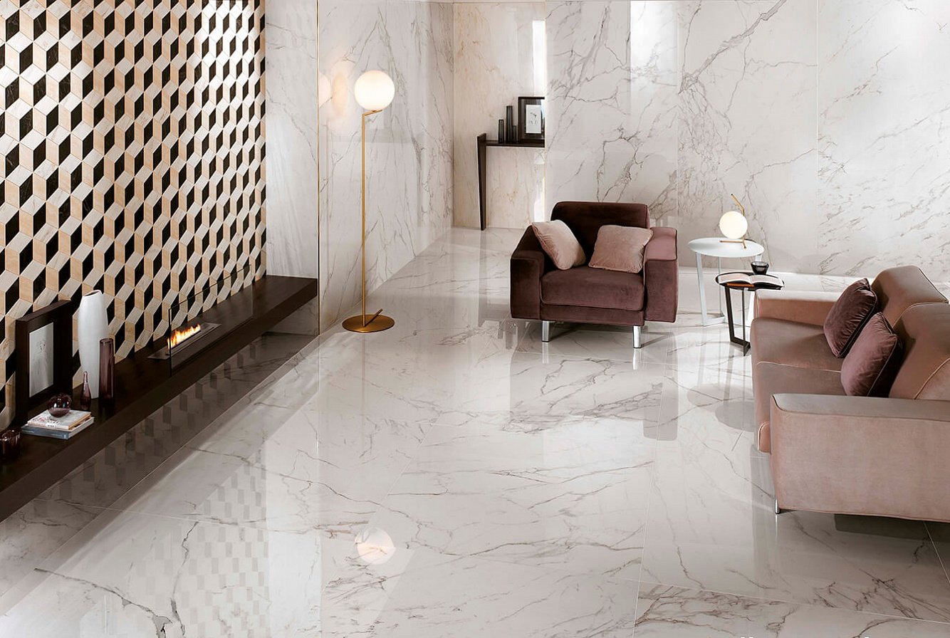 Мрамор в интерьере гостиной