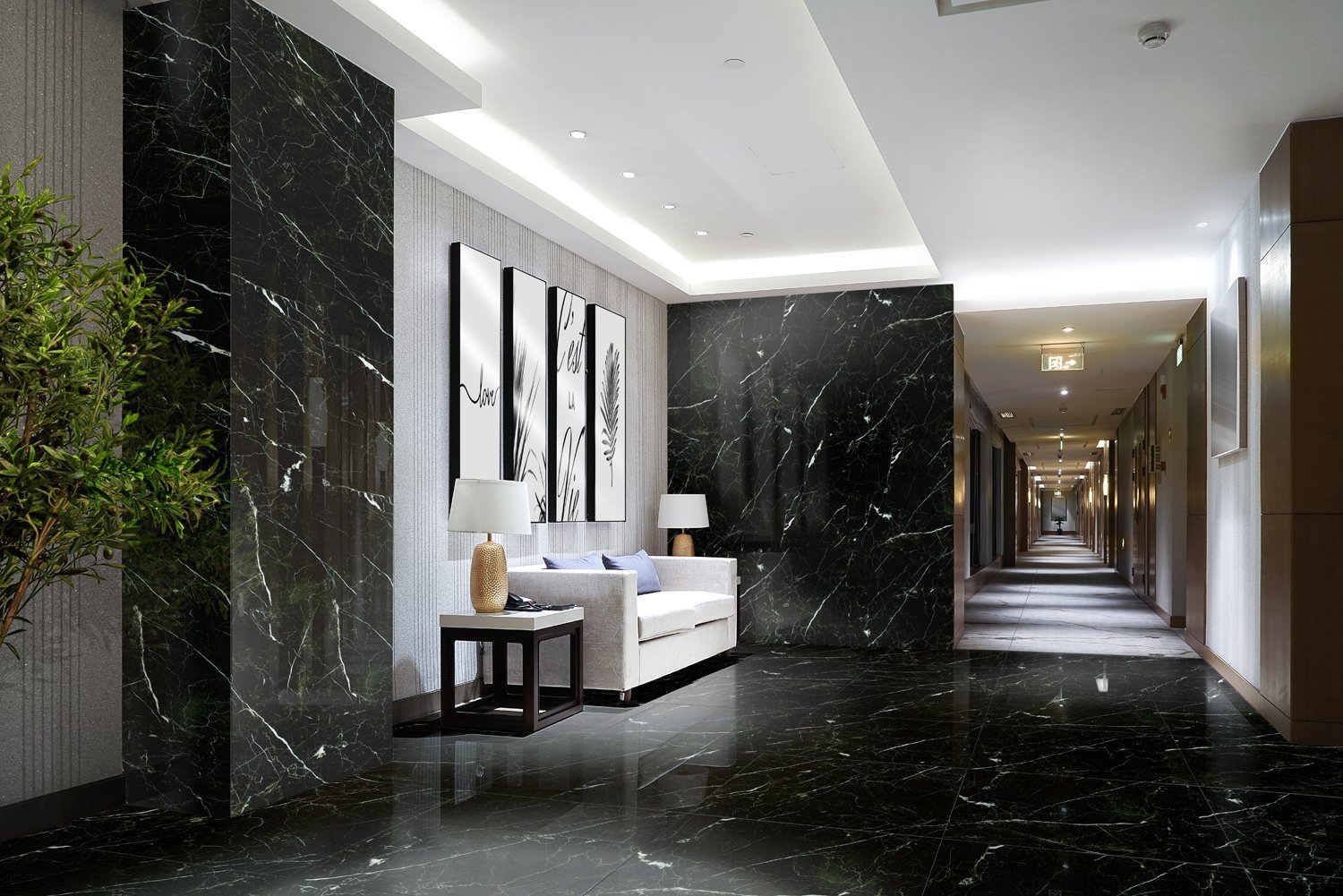 Керамогранит в коридоре на стене