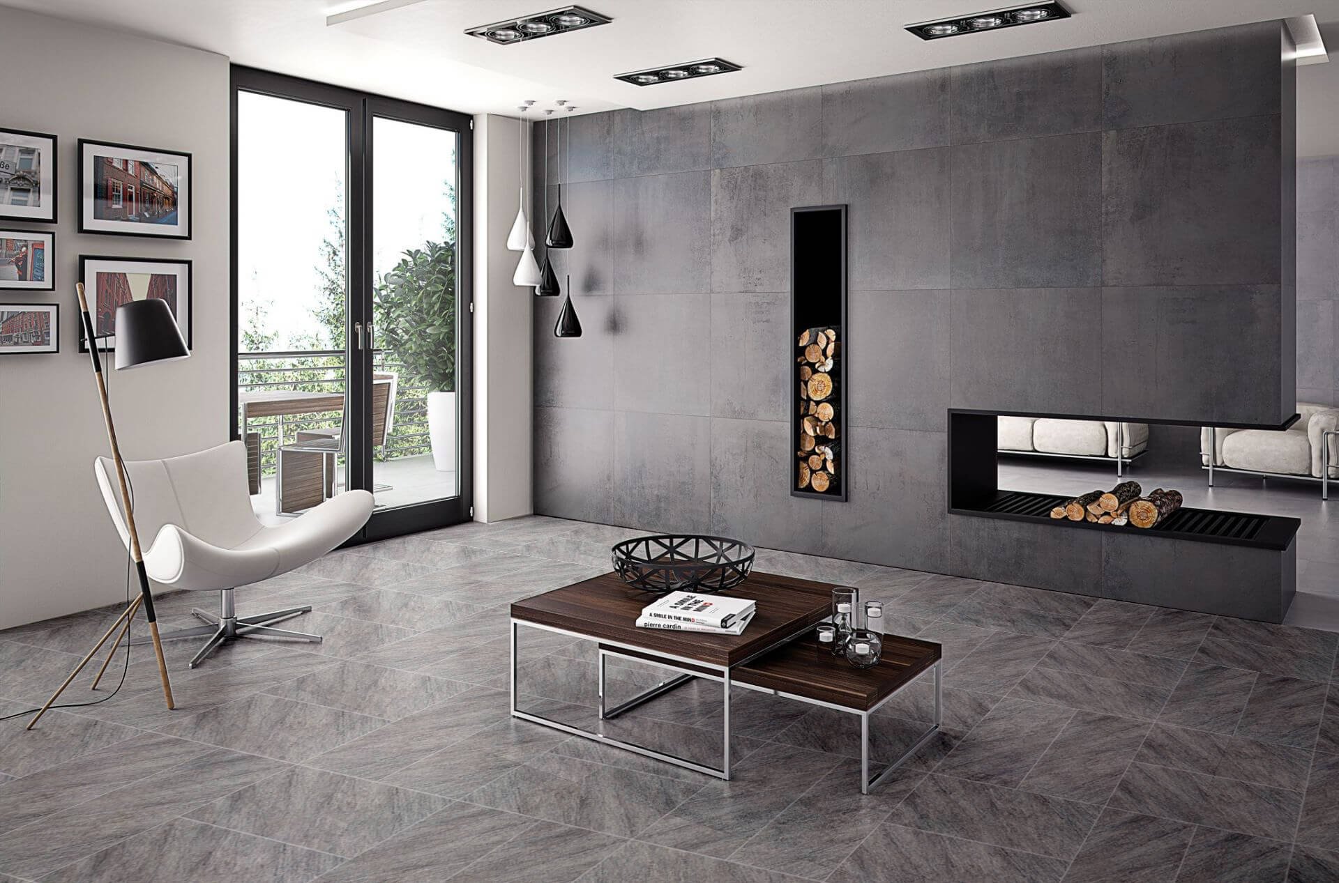 Керамогранит на стене в гостиной