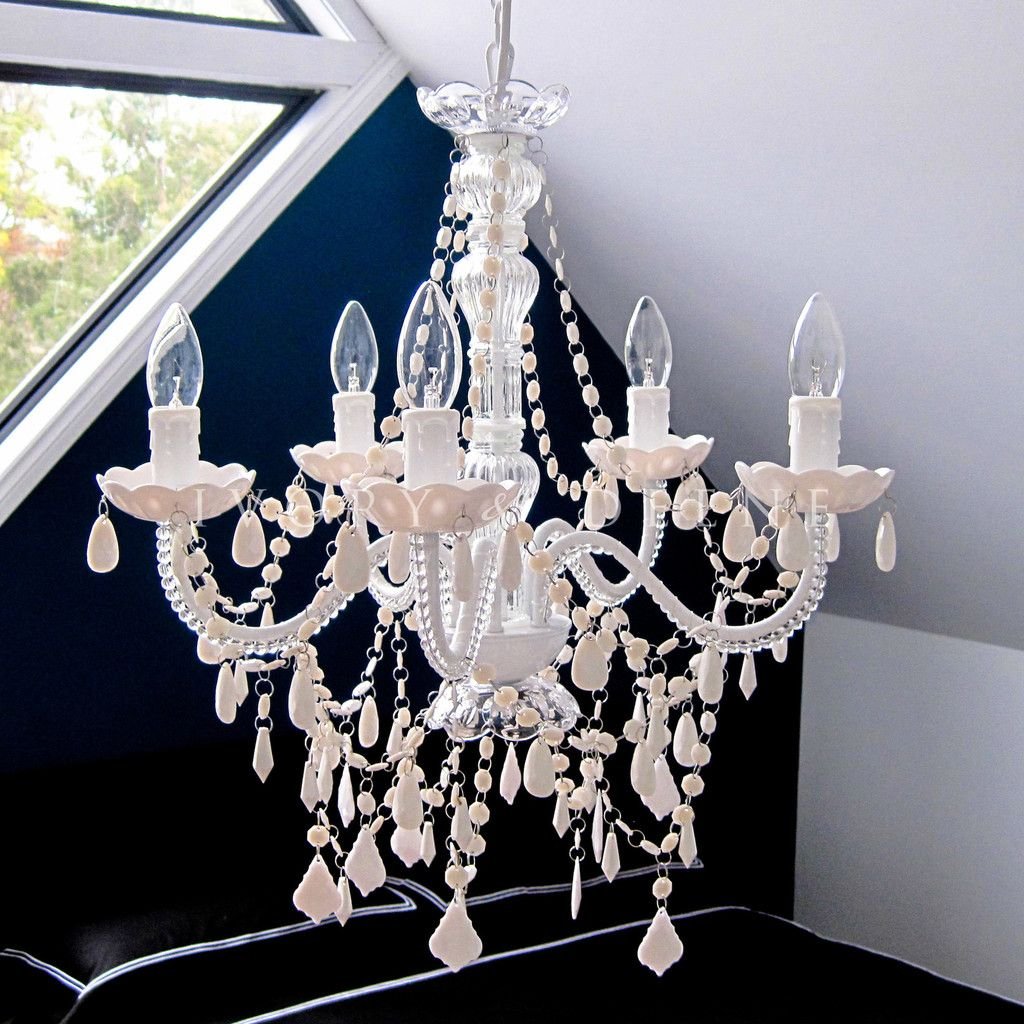 Украшение люстры бусами