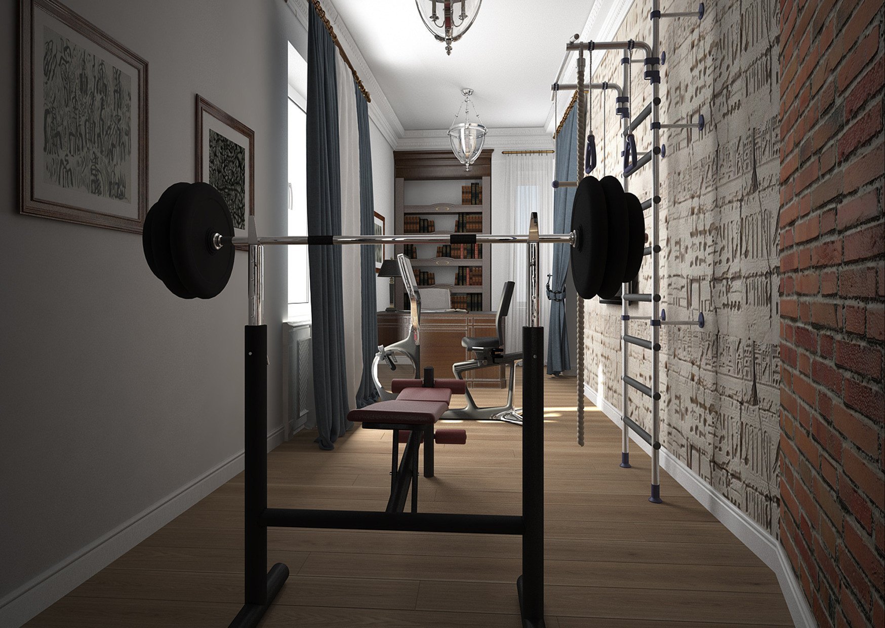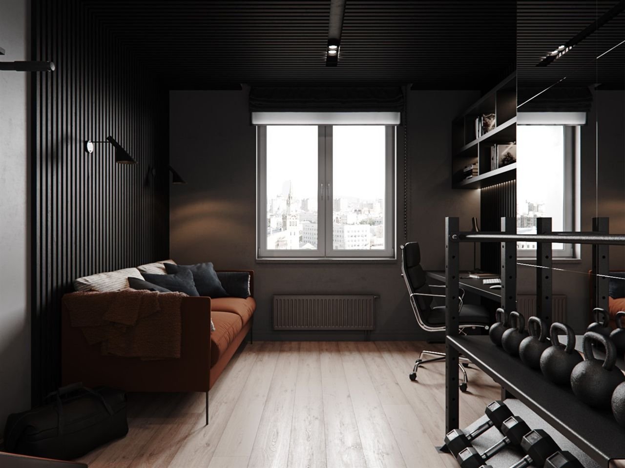 Кабинет и спортзал в одной комнате
