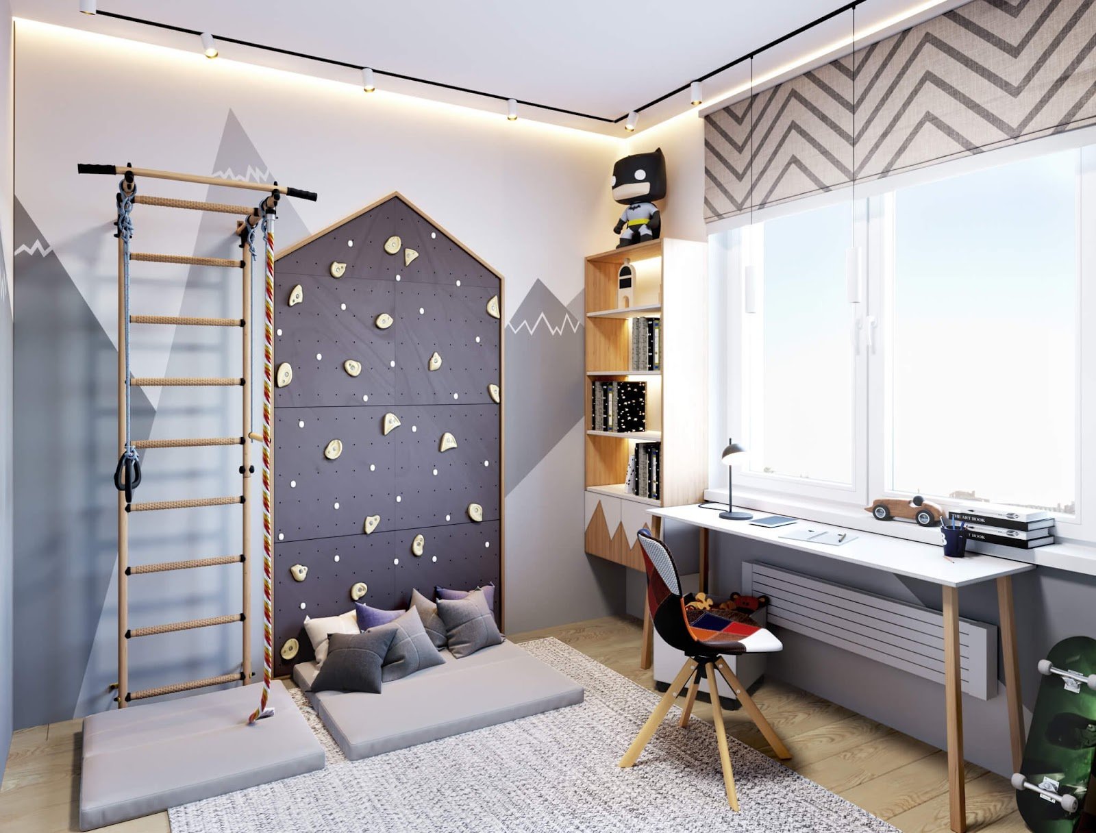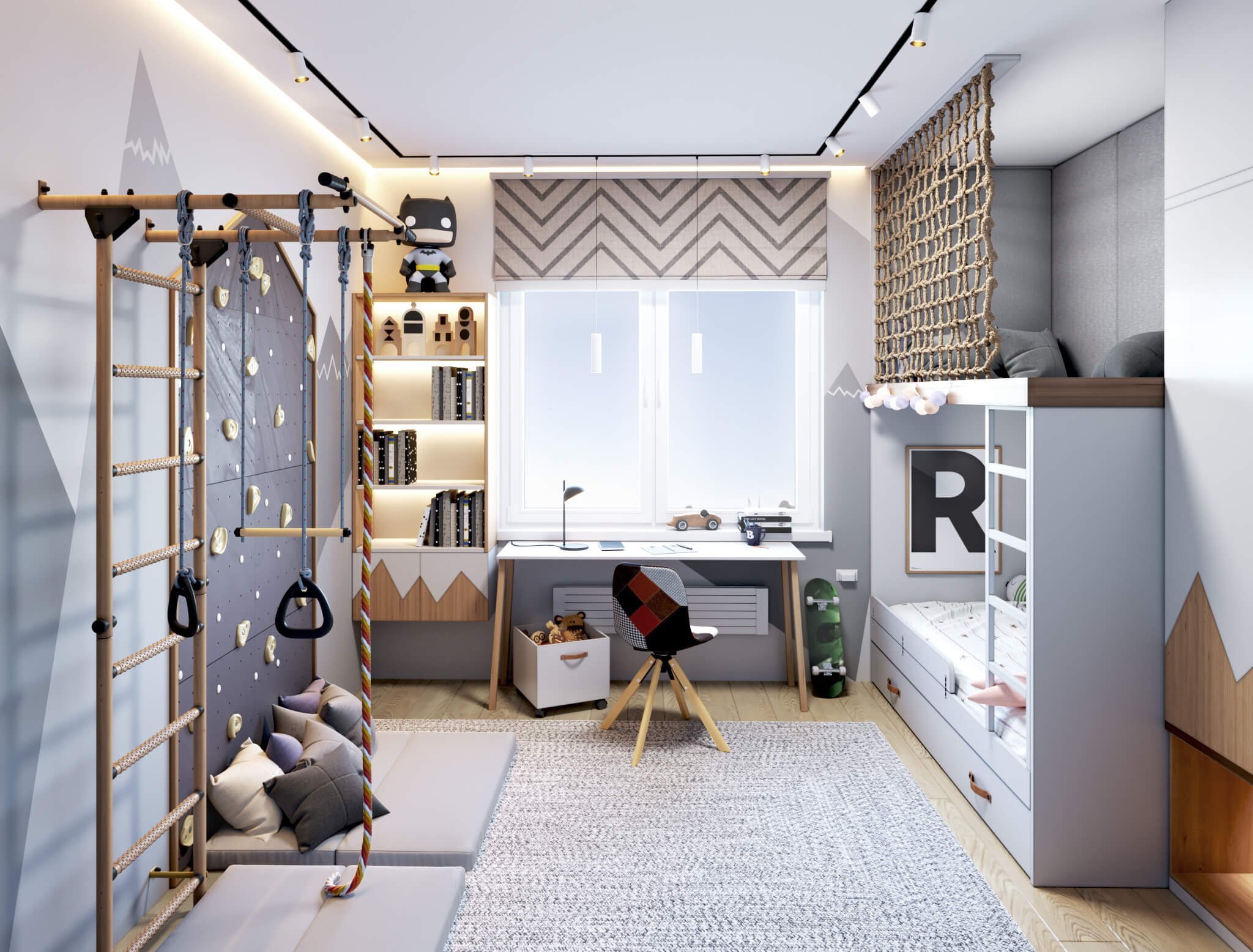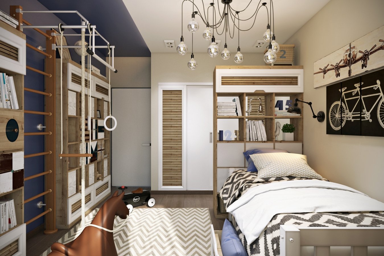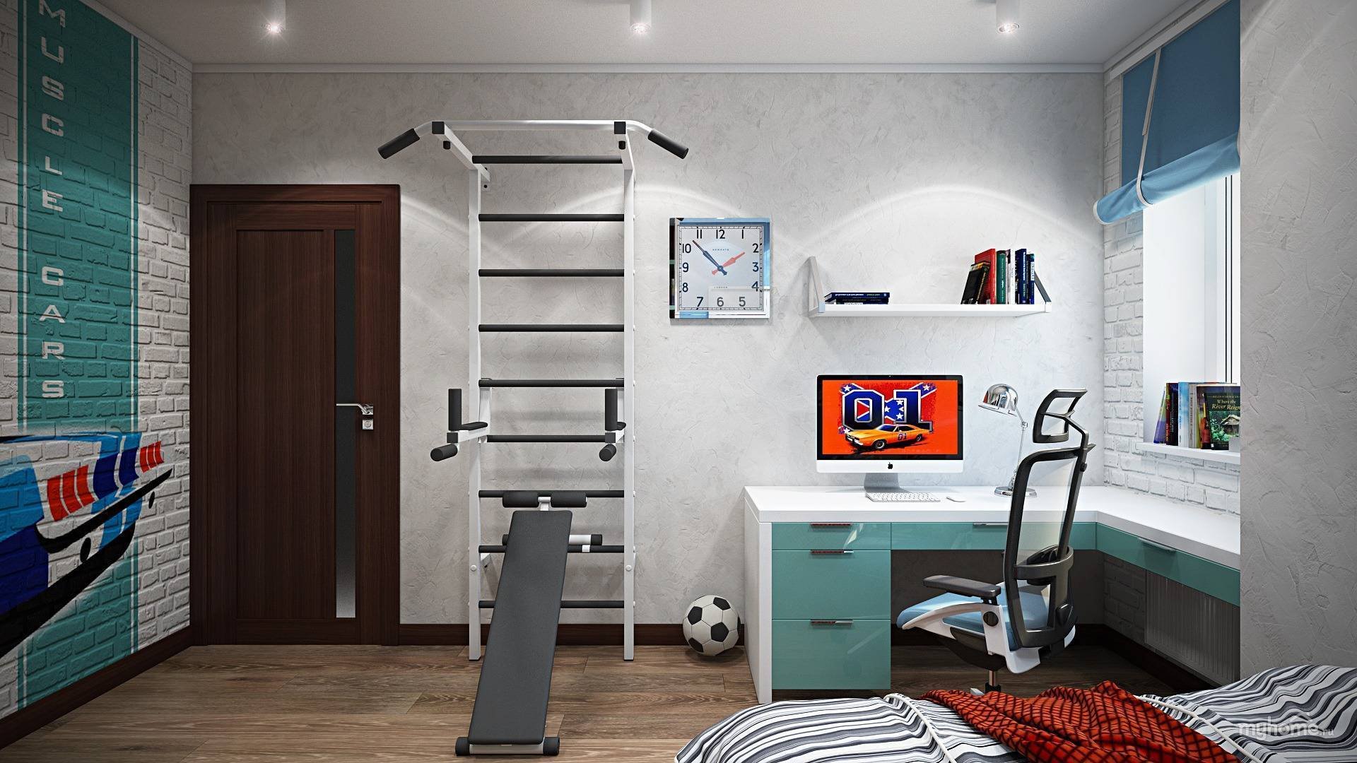 Комната для подростка мальчика со шведской стенкой