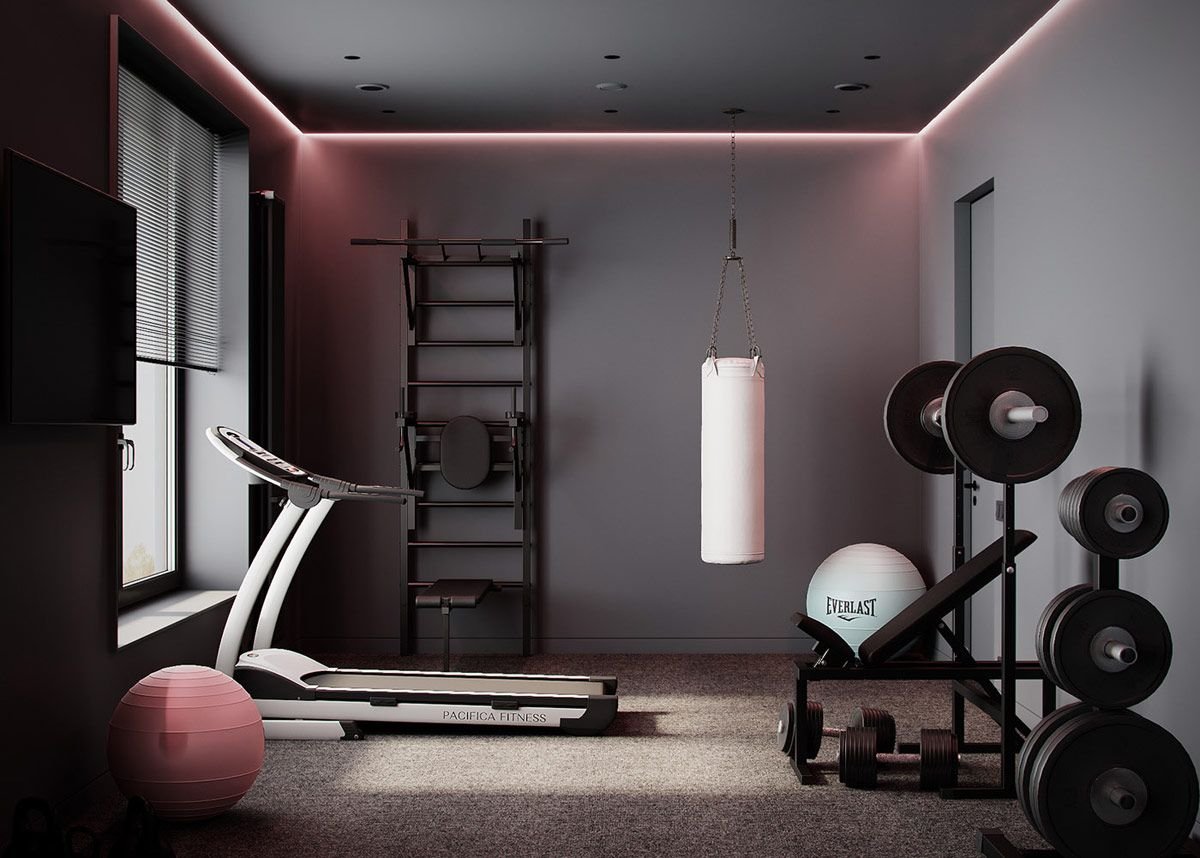 Тренажерный зал в частном доме интерьер