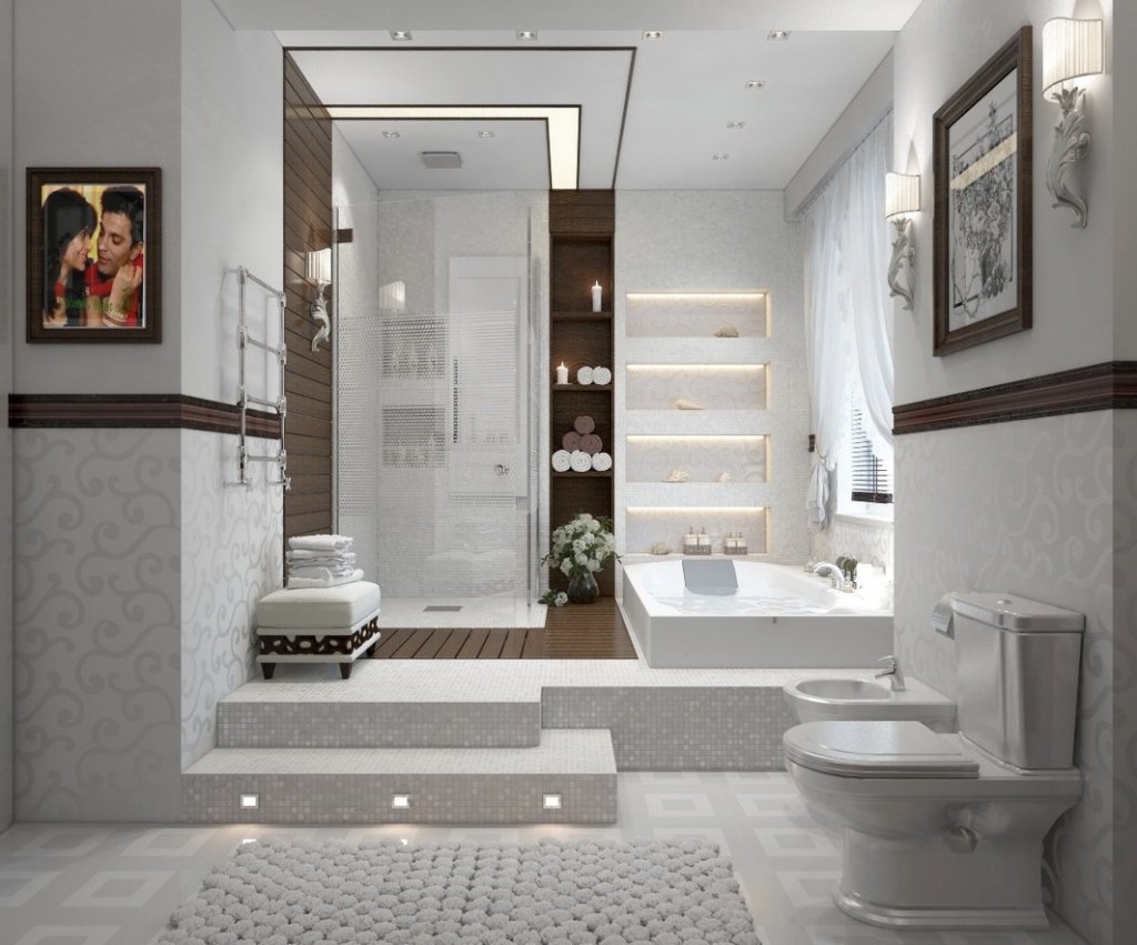Ванная на подиуме в интерьере