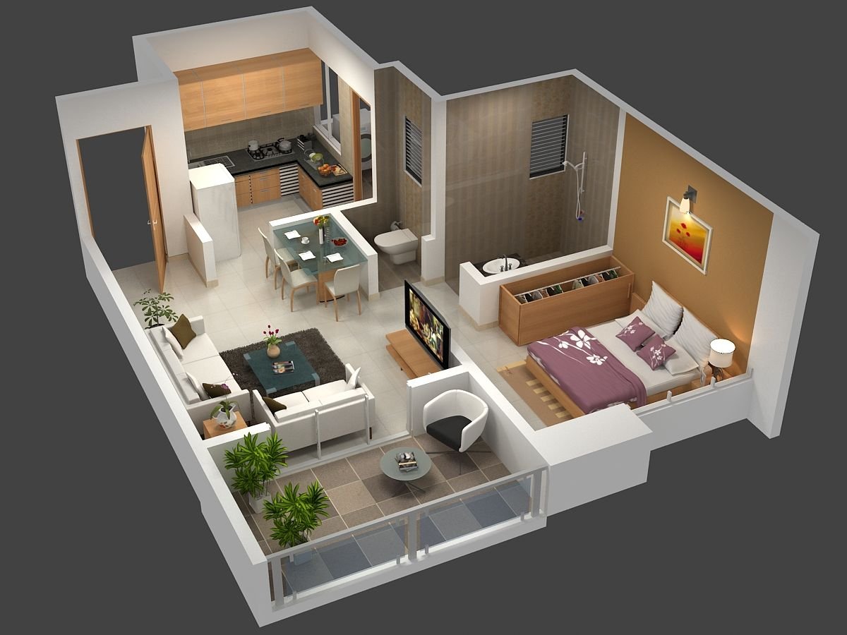 3д планировка квартиры студии