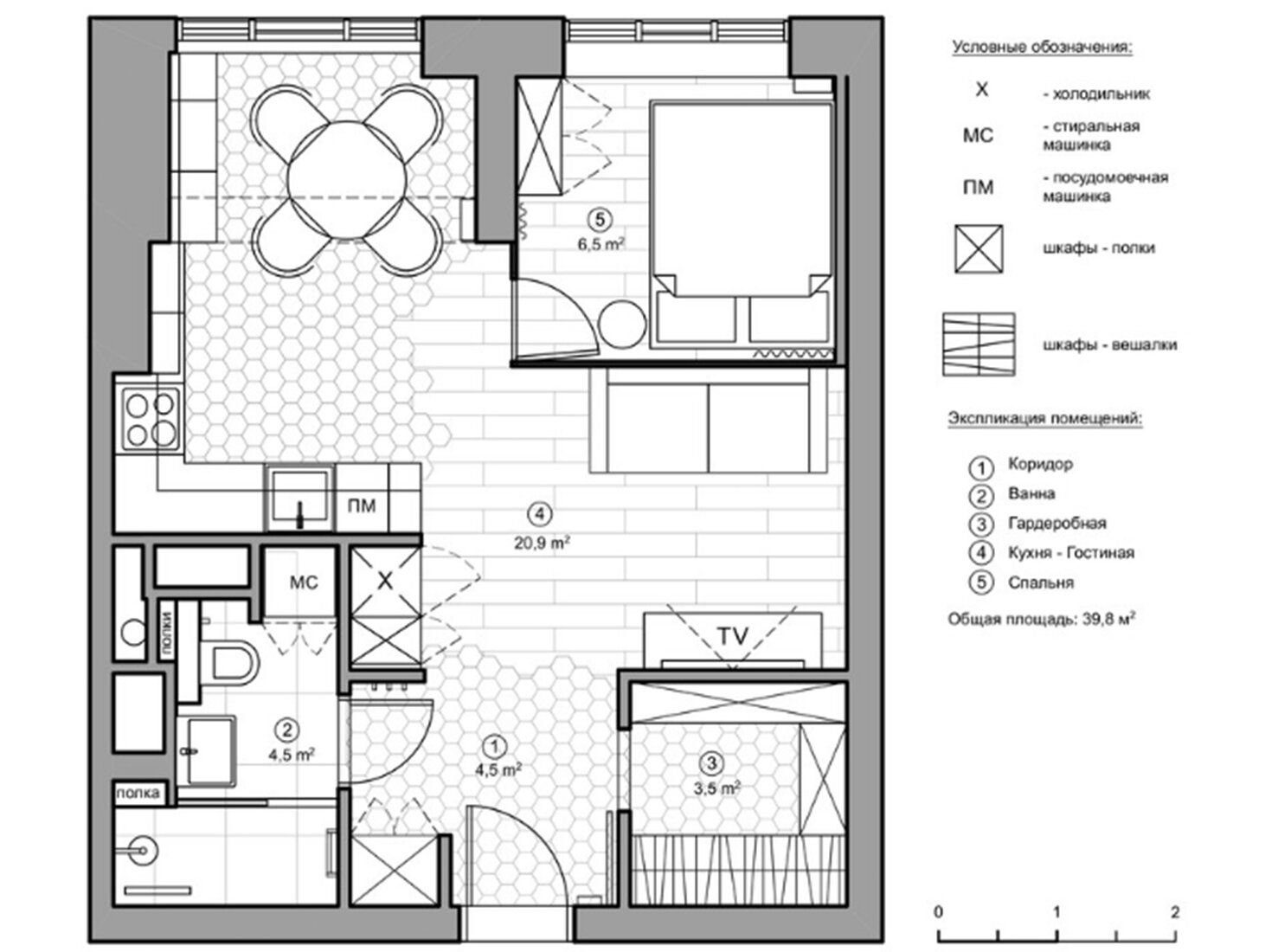 Планировка 40 кв метров квартиры со спальным местом чертеж