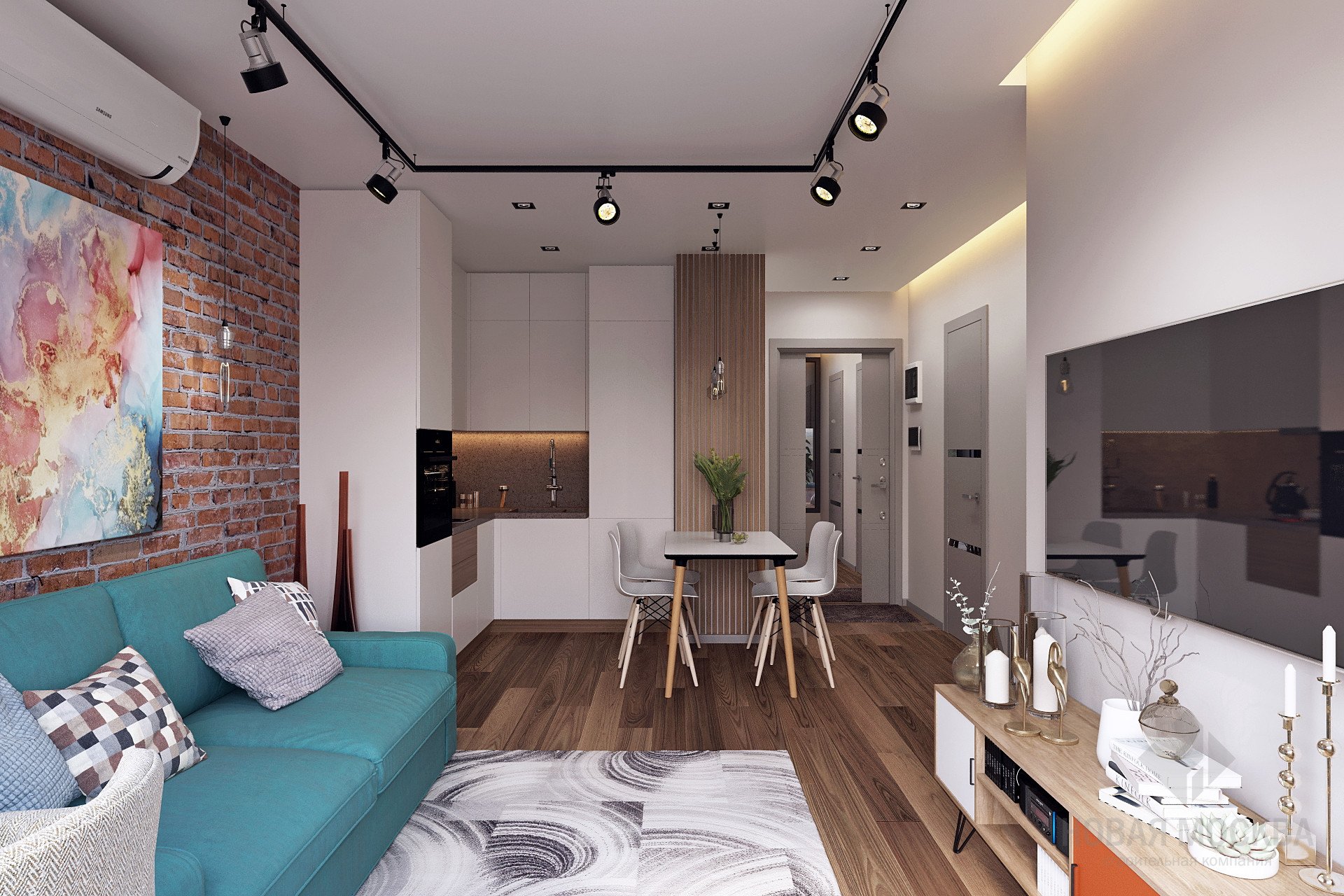 Дизайнерский проект однокомнатной квартиры