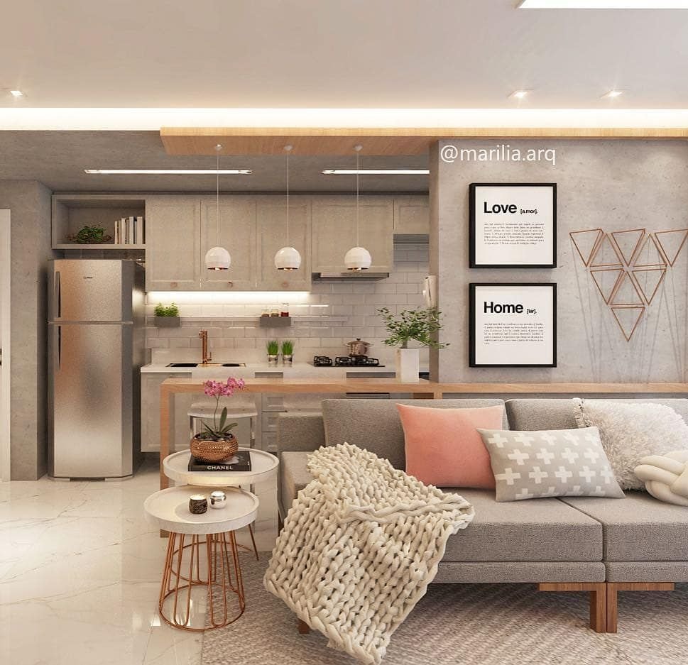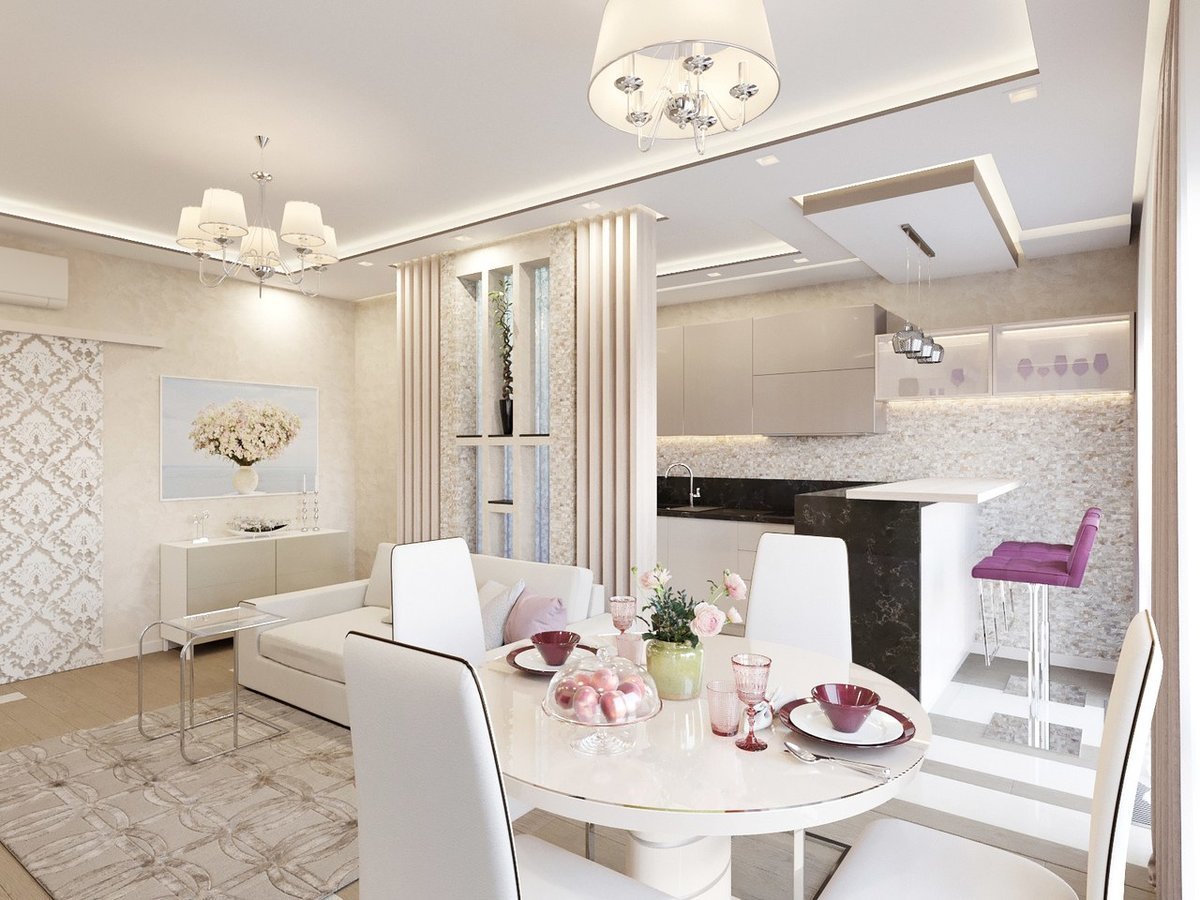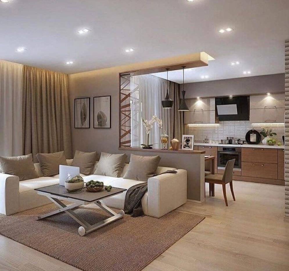 Интерьер кухня гостиная 19м2