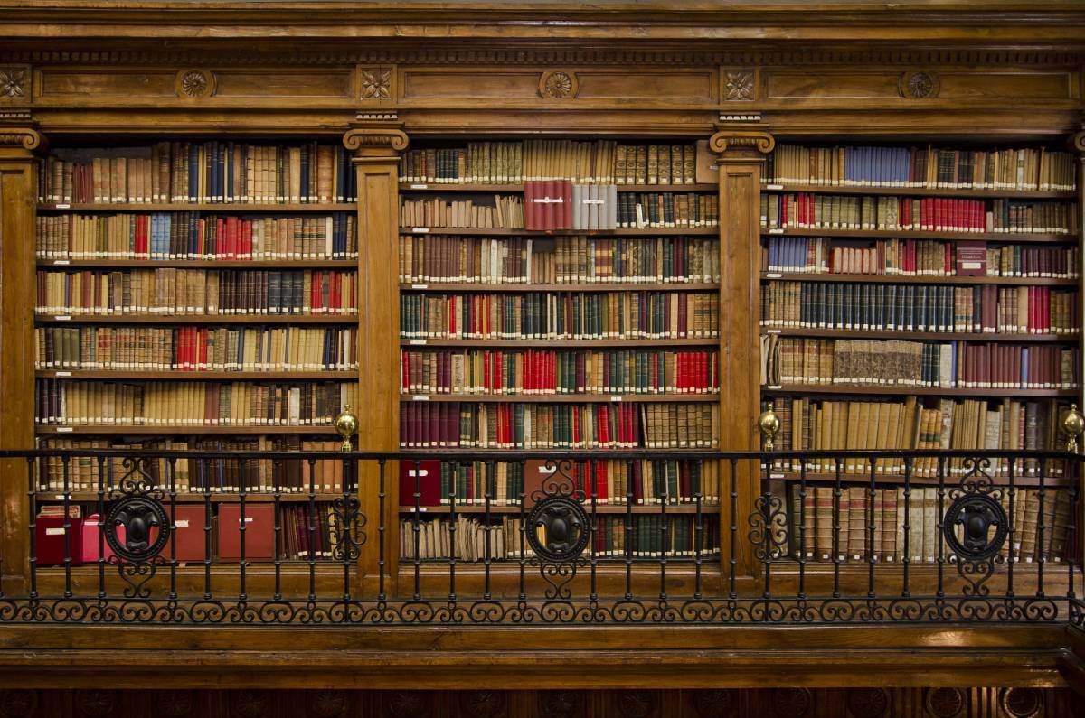 Книжные полки в библиотеке