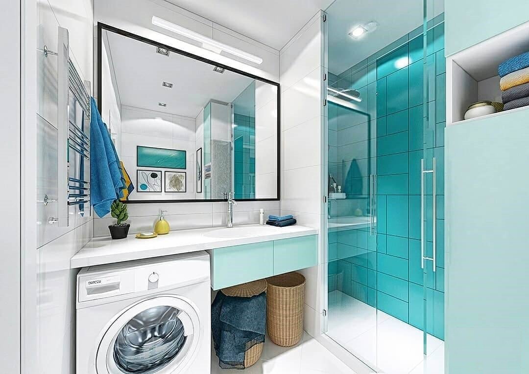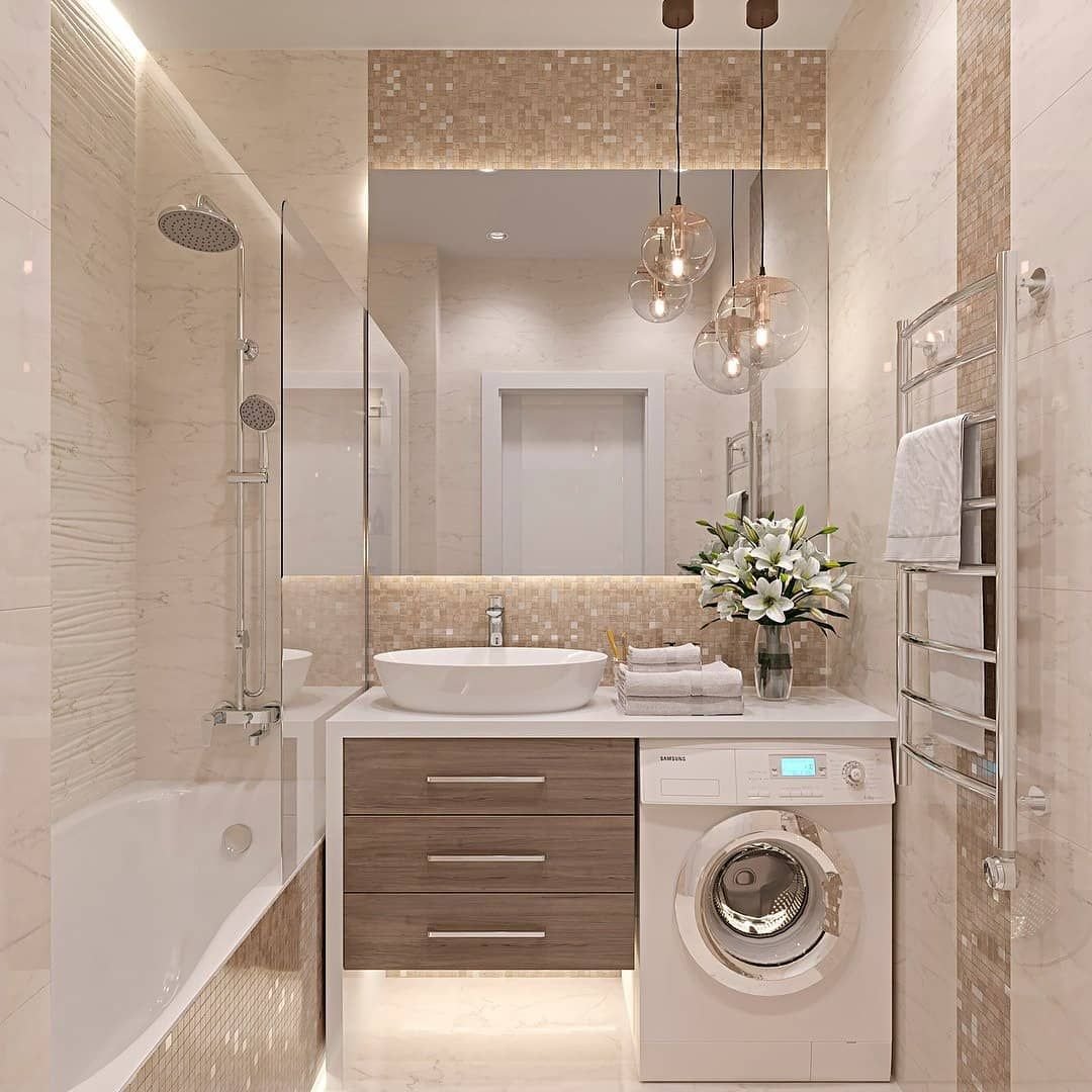 Интерьер совмещенного санузла 5 кв.м со стиральной машиной
