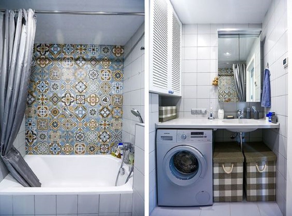 Ванная в хрущевке в стиле пэчворк