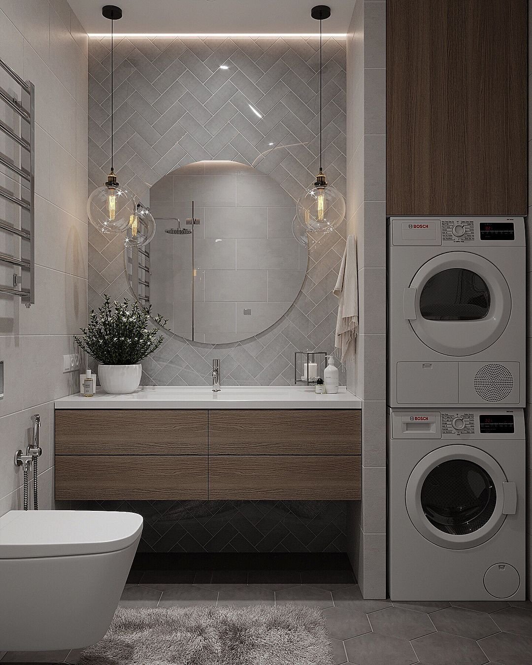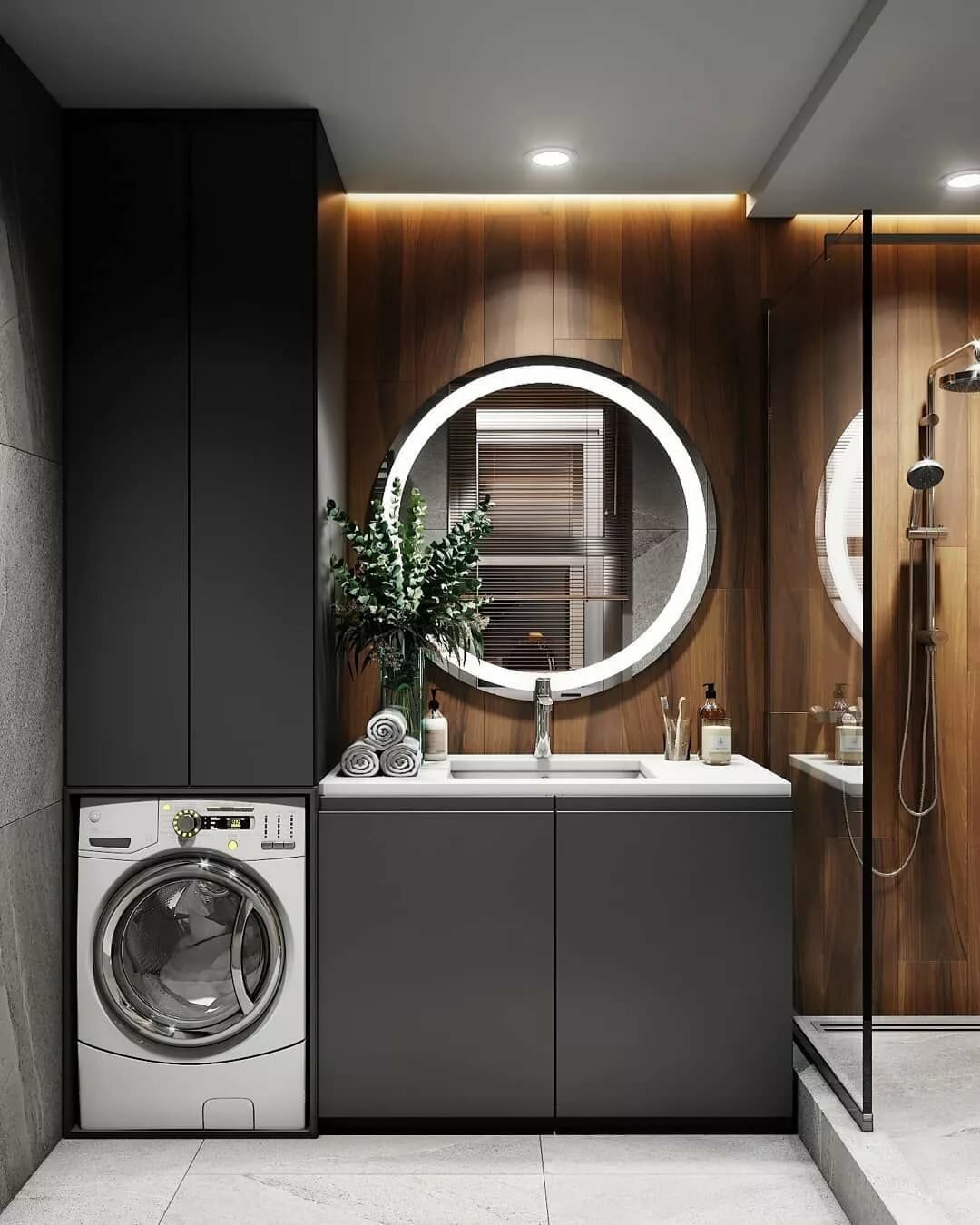 Ванная в стиле лофт со стиральной машиной