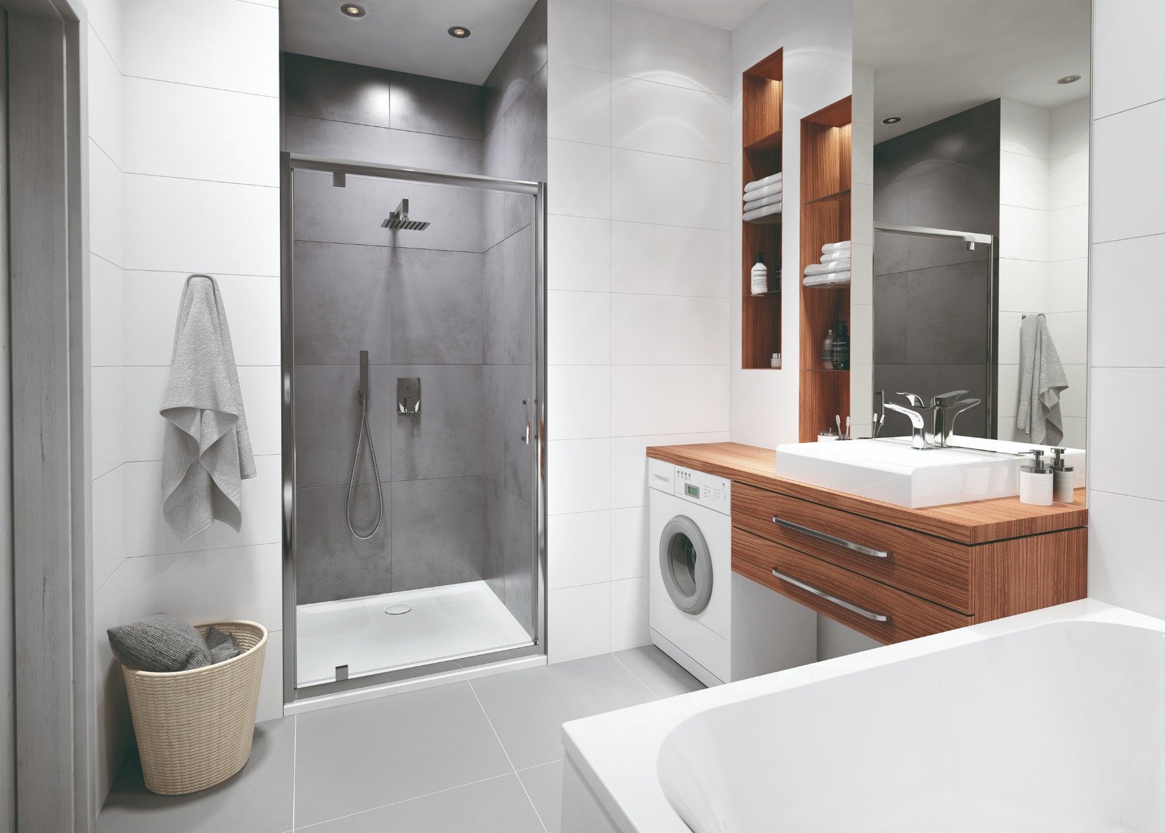 Ванная с душем и стиральной машиной
