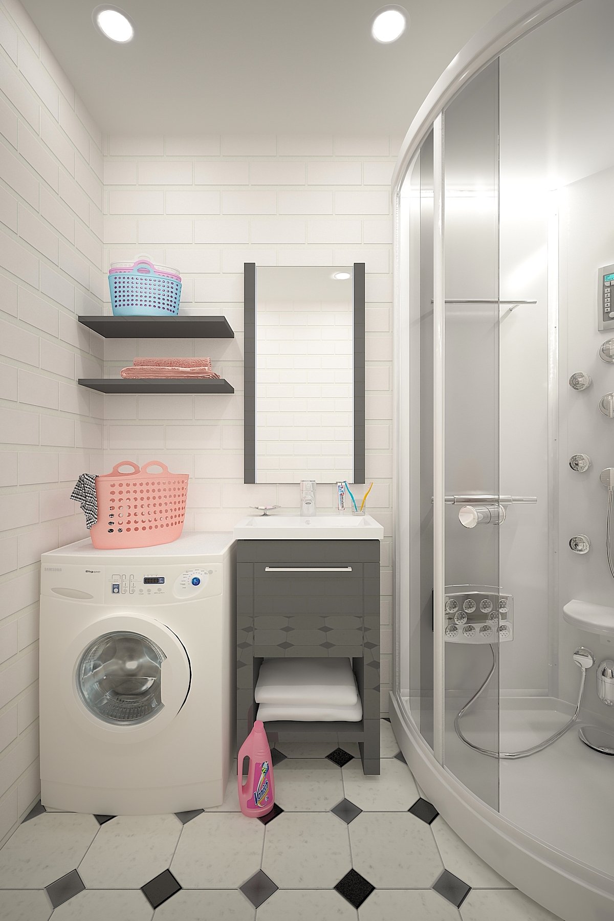 Санузел с душевой и стиральной машиной