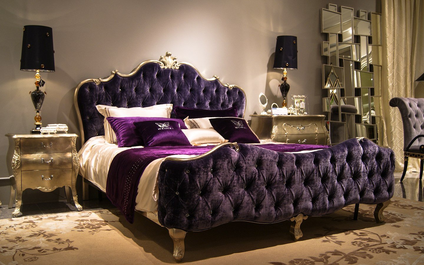 Кровать с бархатным изголовьем