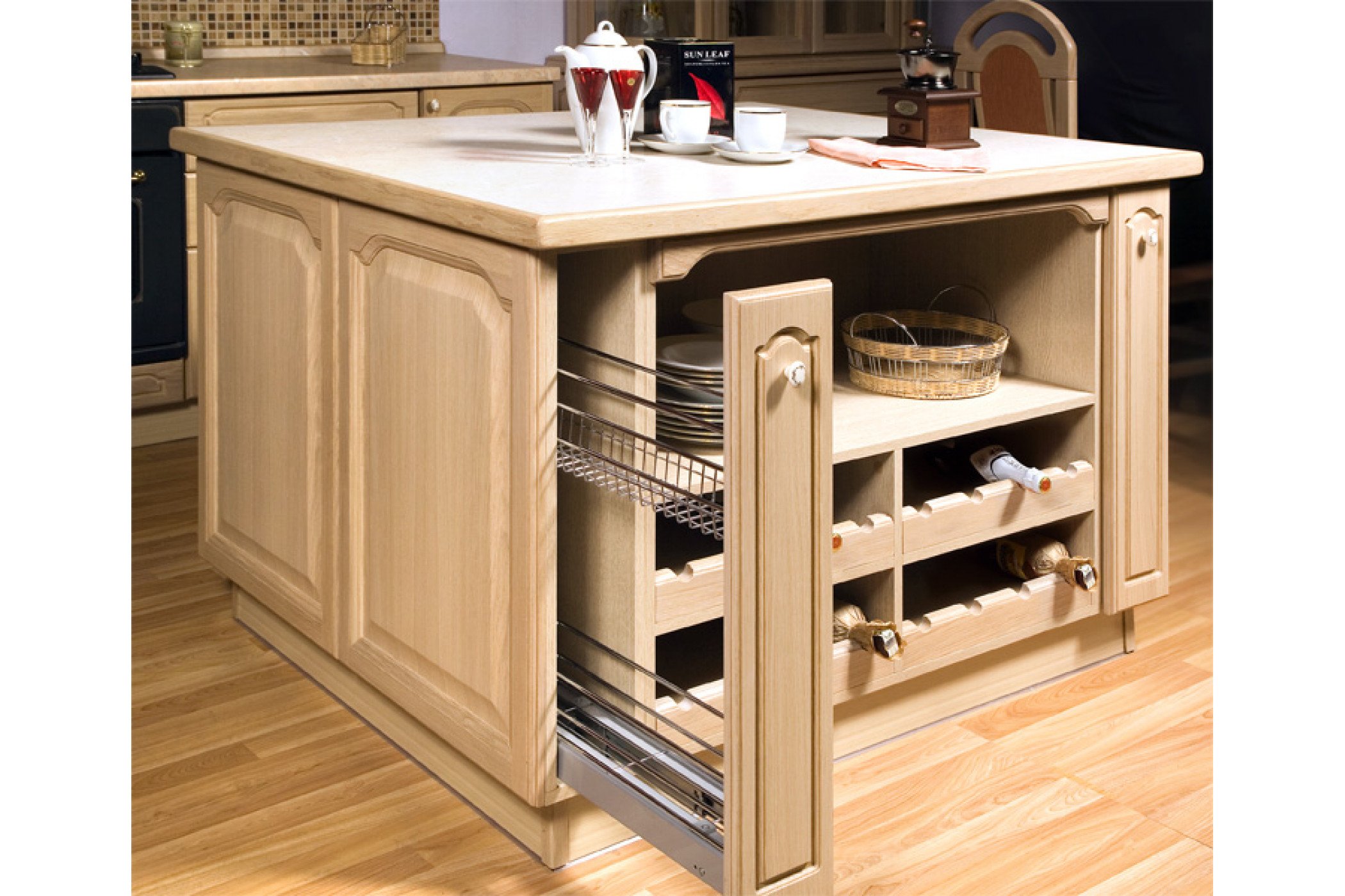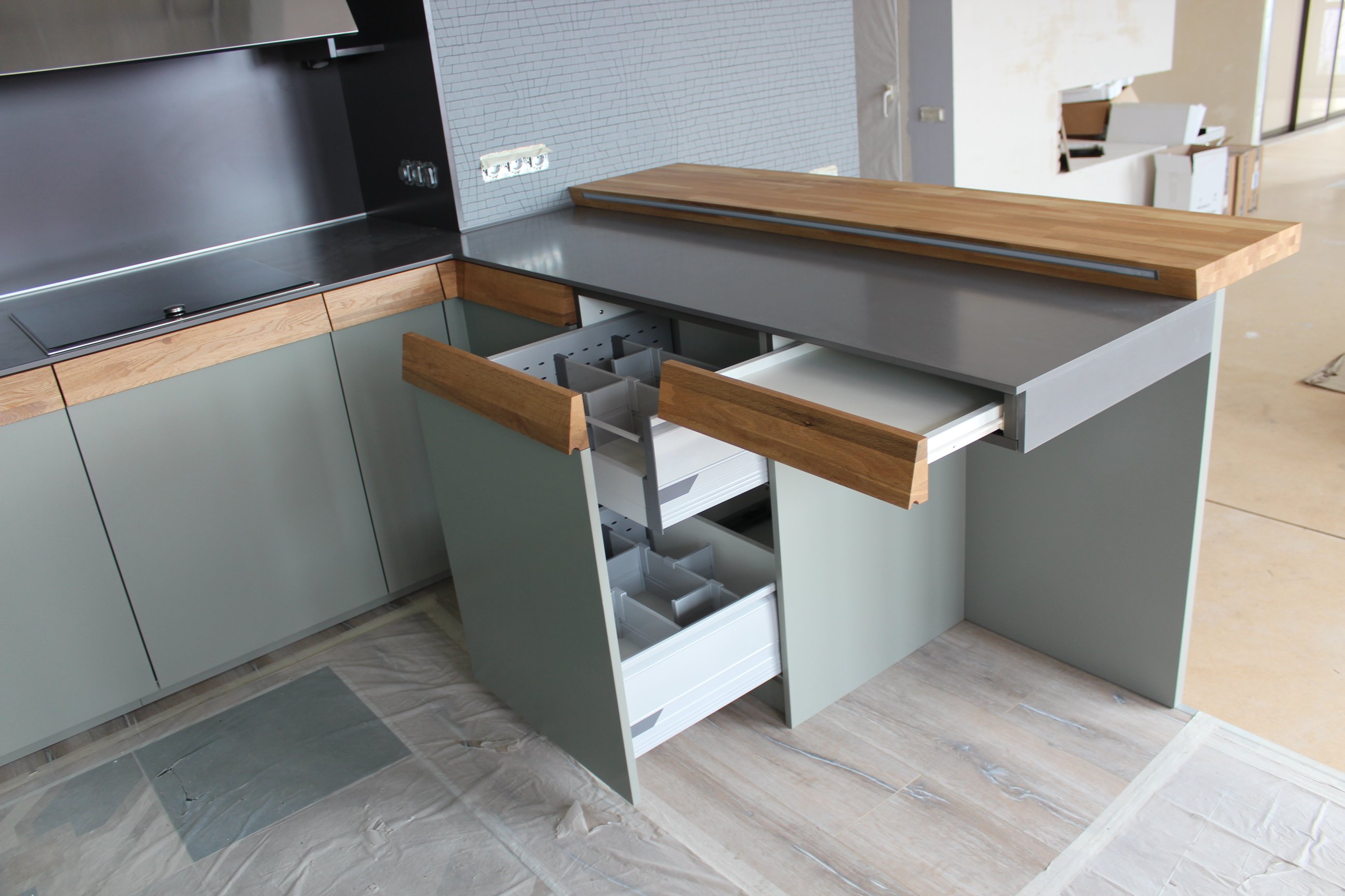 Остров на кухне с выдвижными ящиками