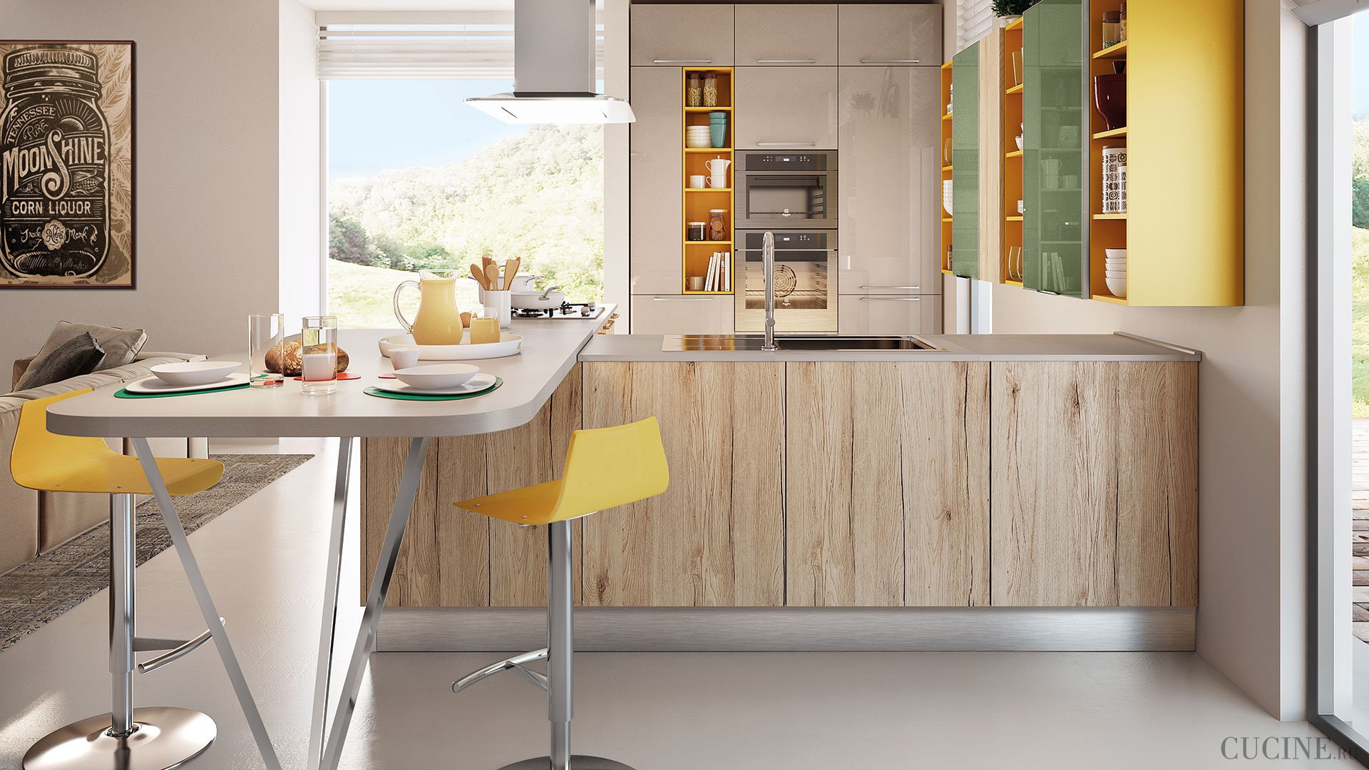 Кухонный гарнитур с островом хайтек