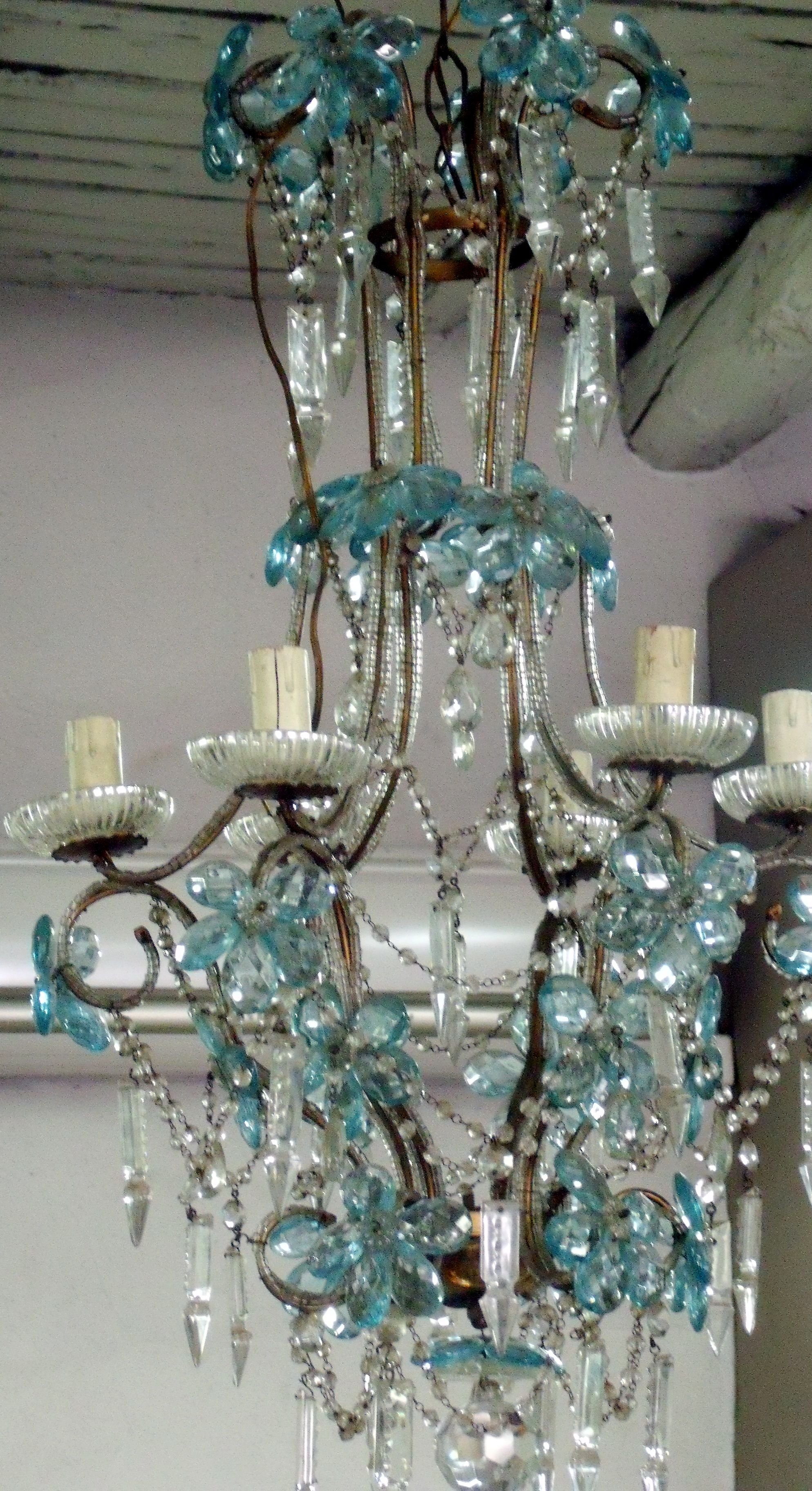 Vintage Murano Glass Chandelier Turquoise Glass
