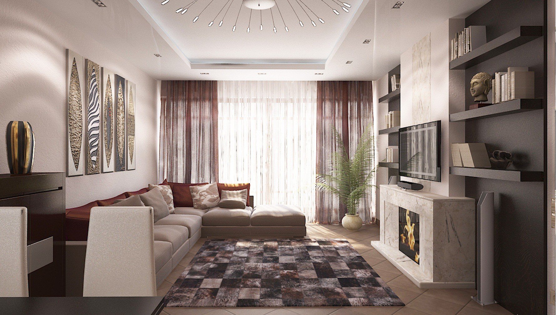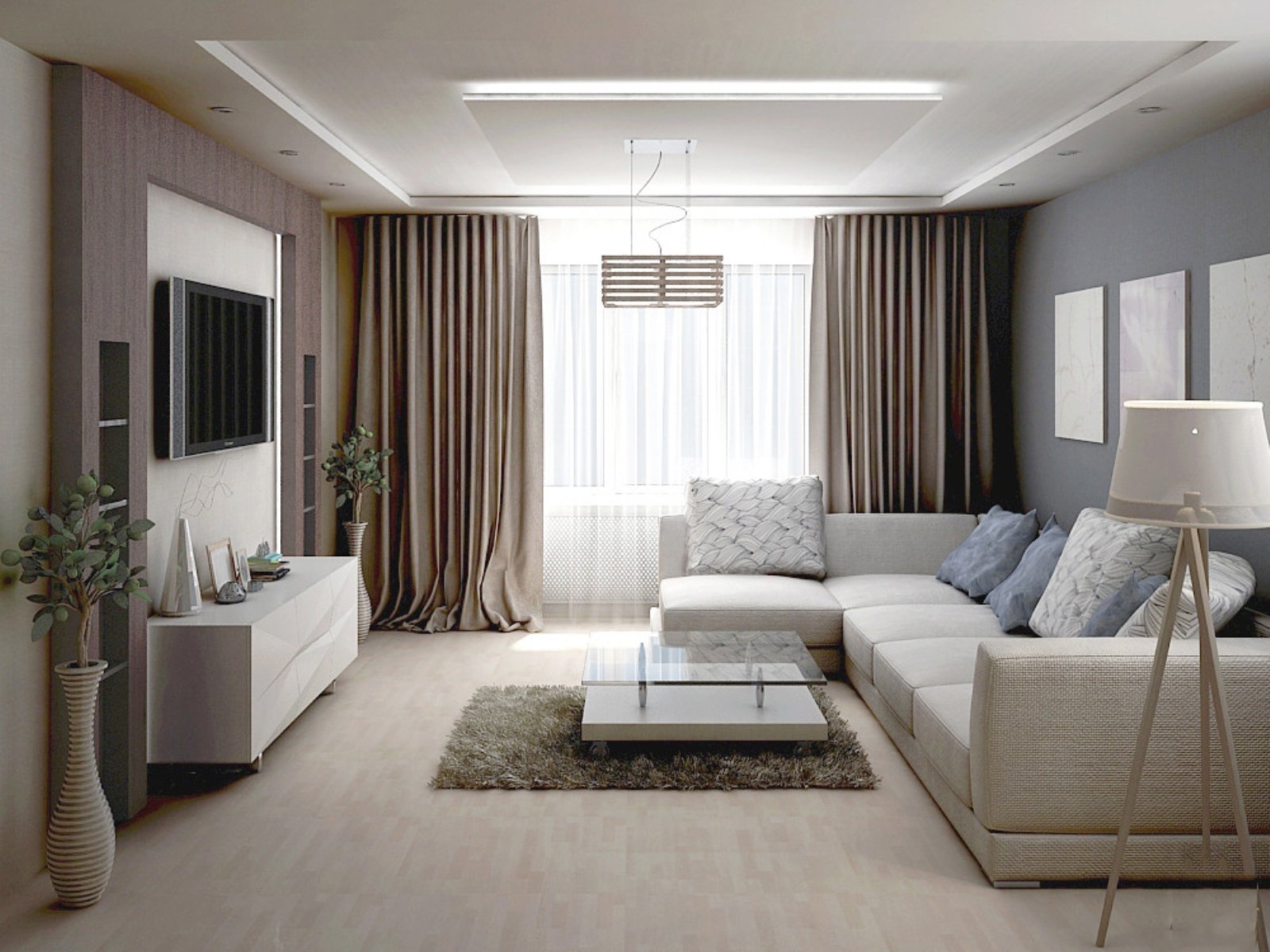 Потолок из гипсокартона для гостиной