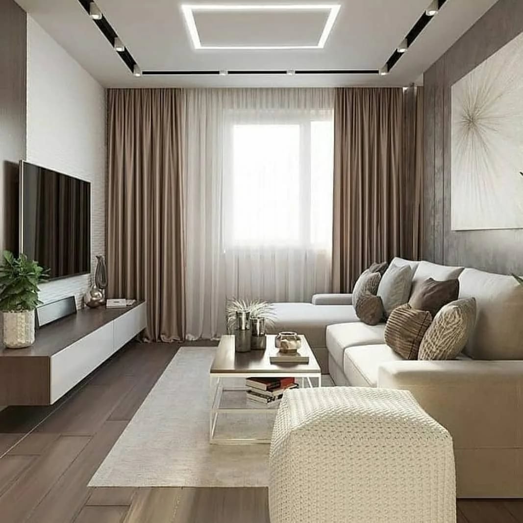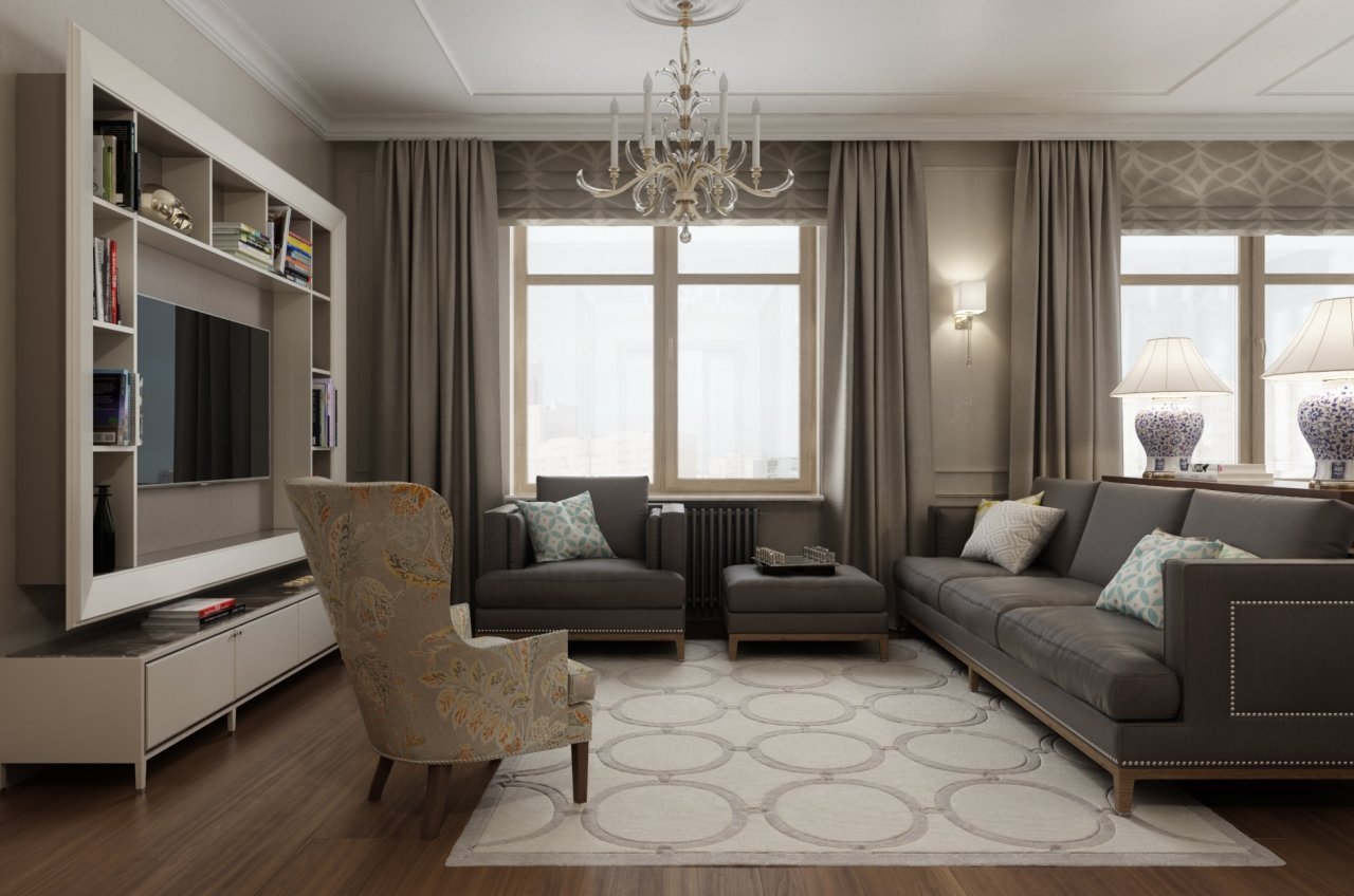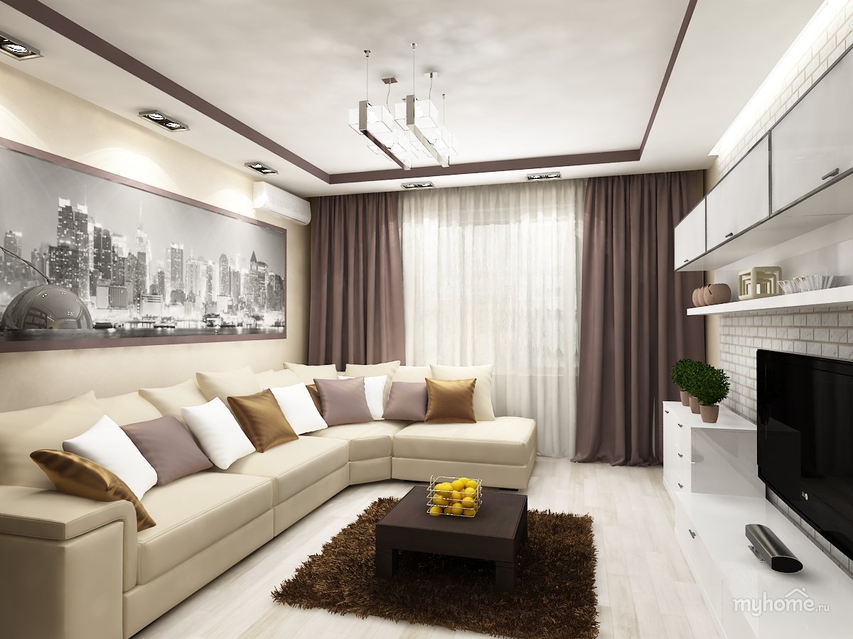 Зал в коричнево-бежевых тонах