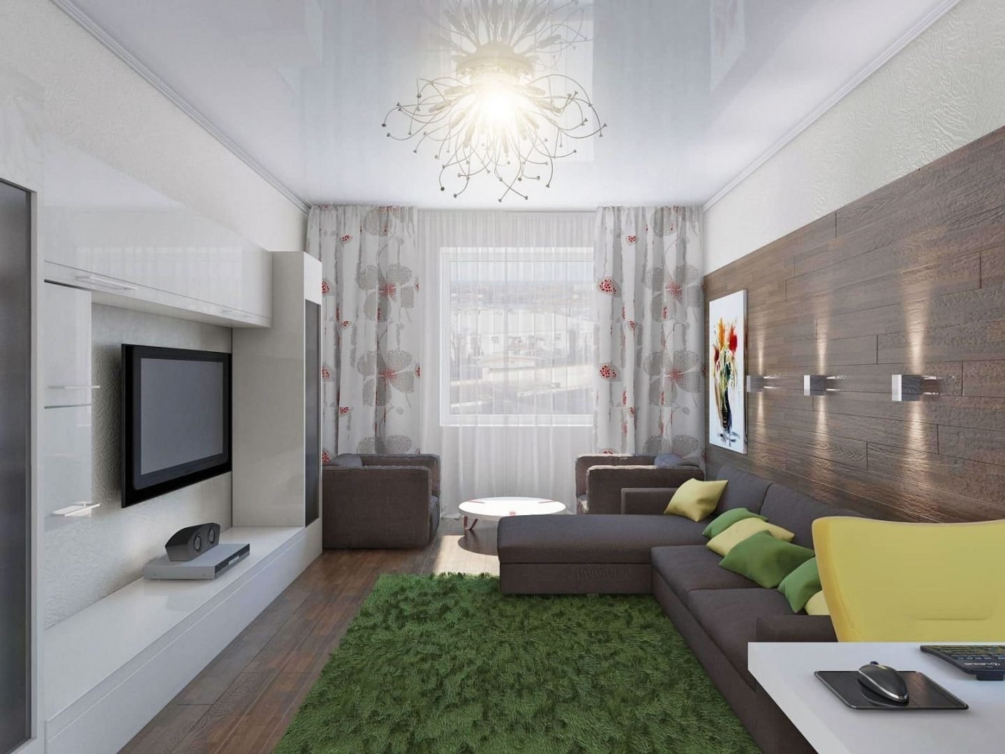 Интерьер прямоугольной гостинной 14 кв.м