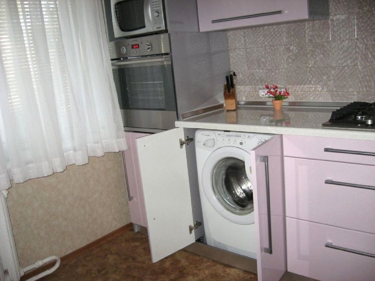 Встроенная стиралка на кухне