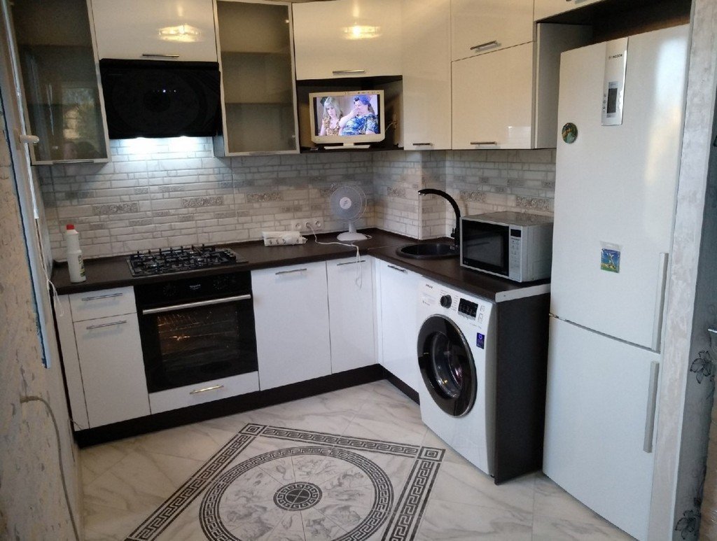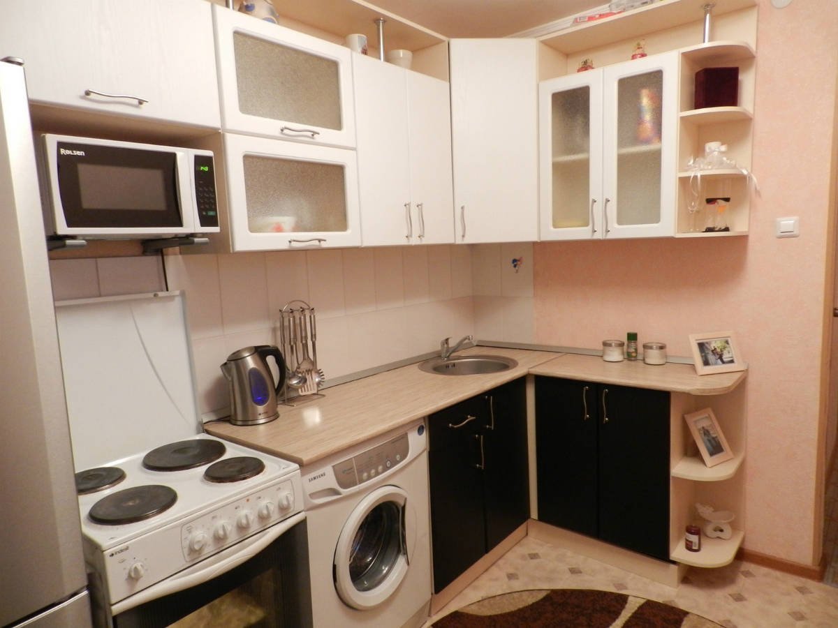 Маленькая угловая кухня со стиральной машиной