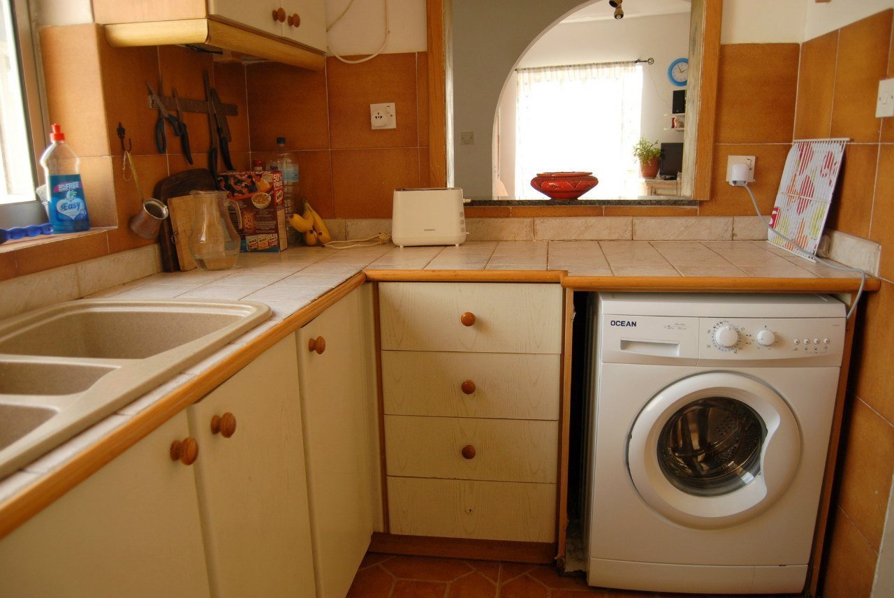 Стиральная машинка на кухне под столешницей