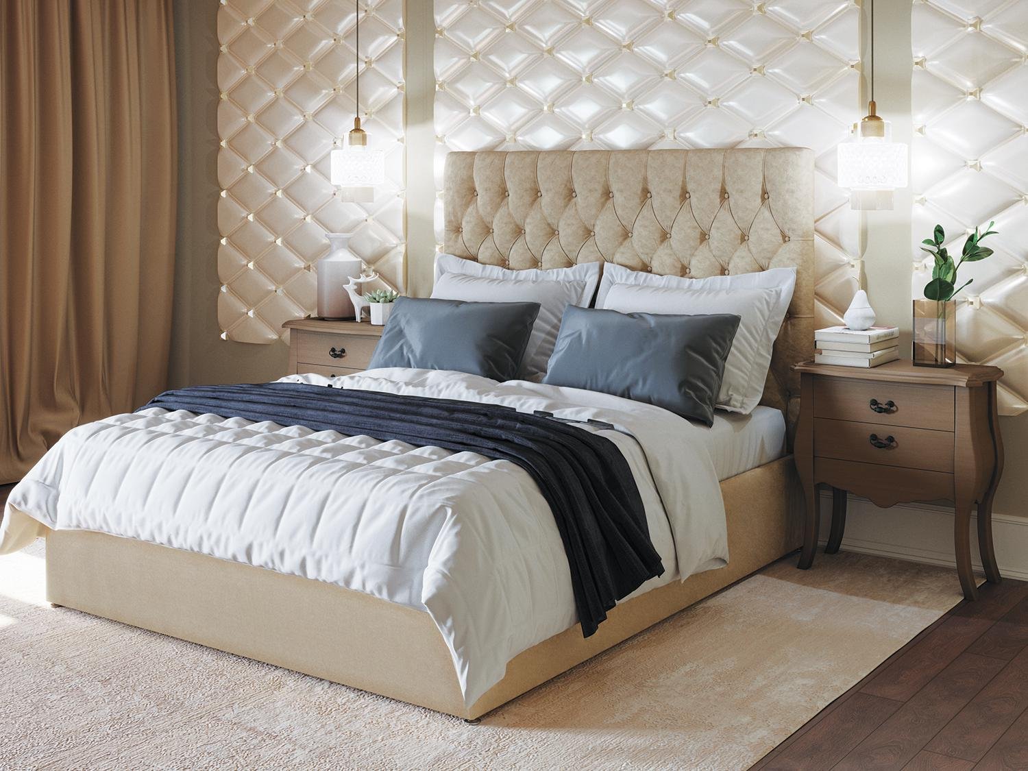Стеганый велюр изголовье кровать Caspia 02 Vanilla