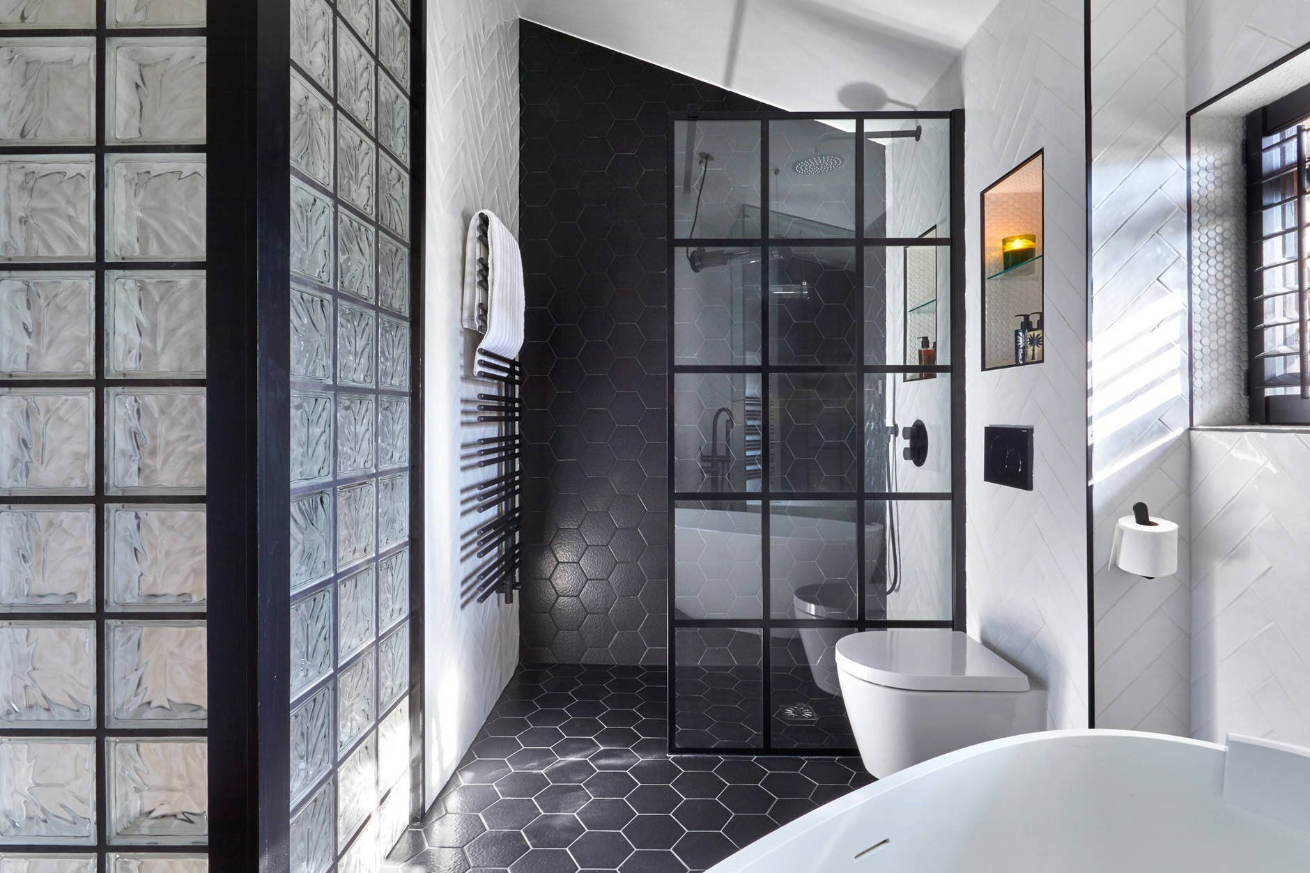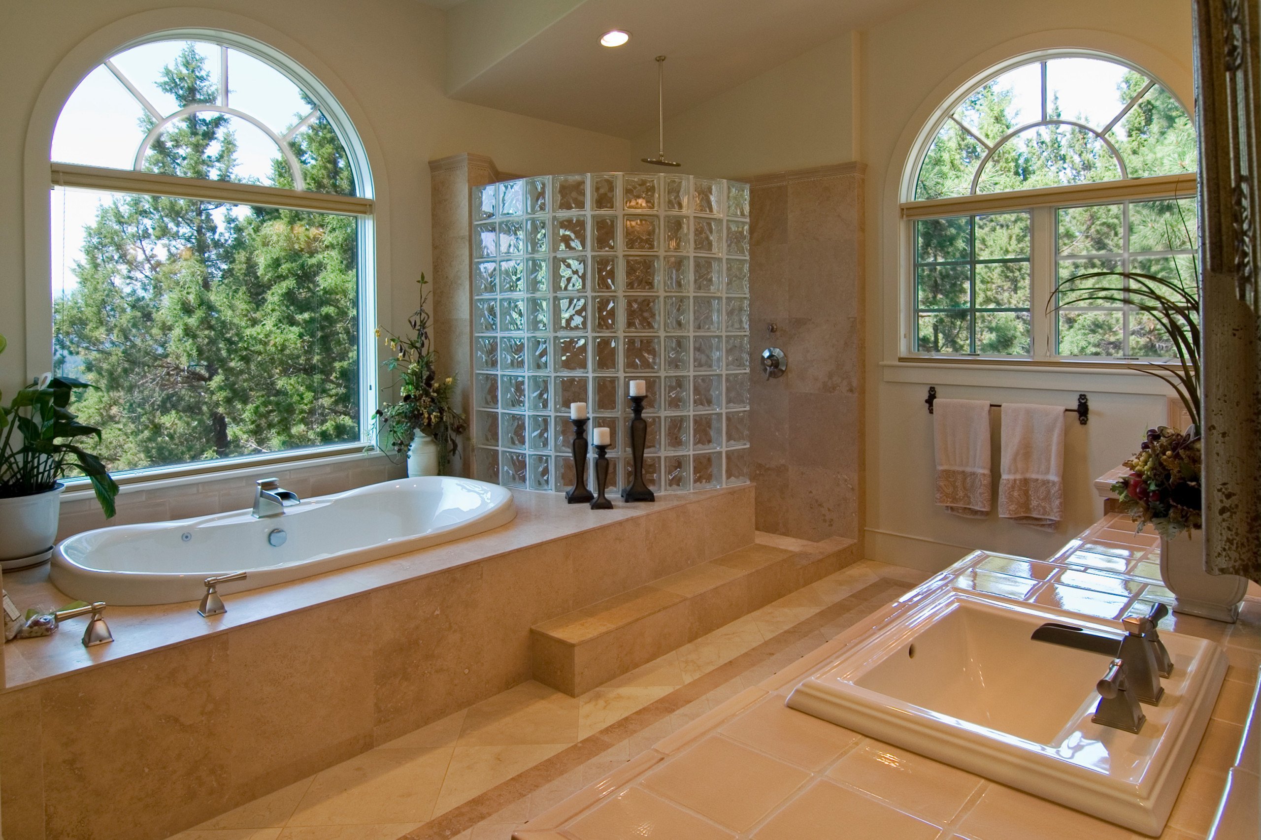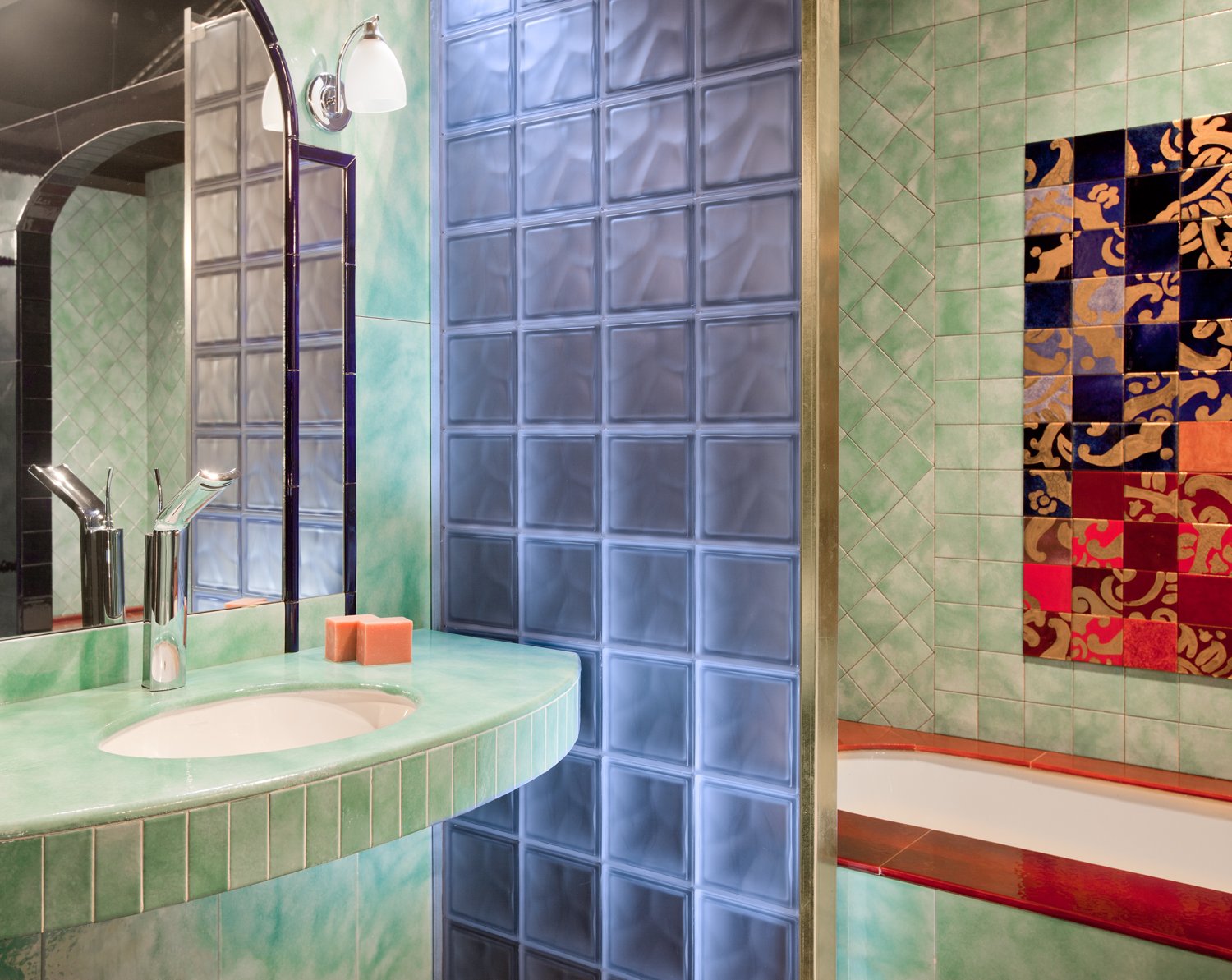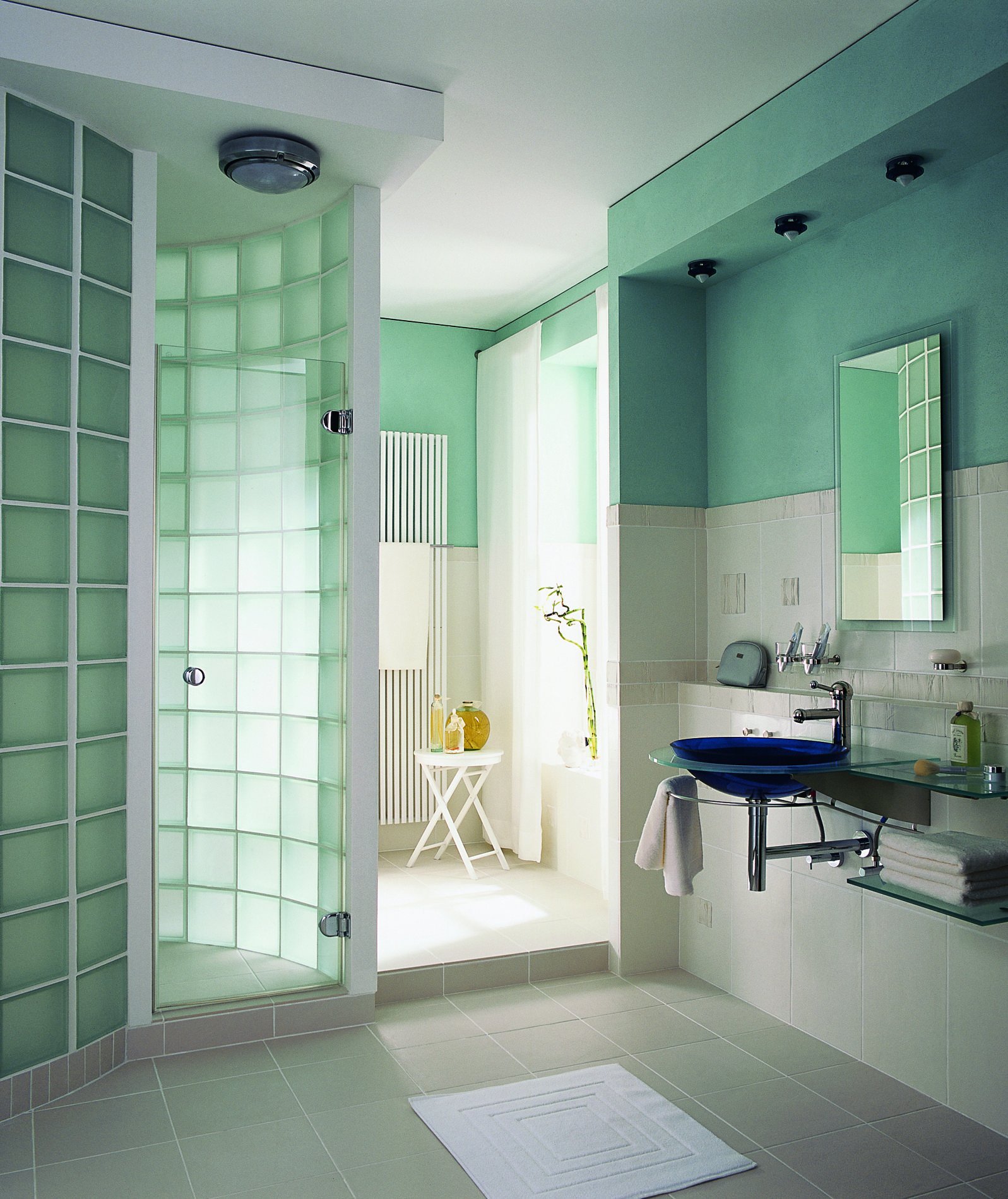 Декоративные стеклоблоки в интерьере ванной