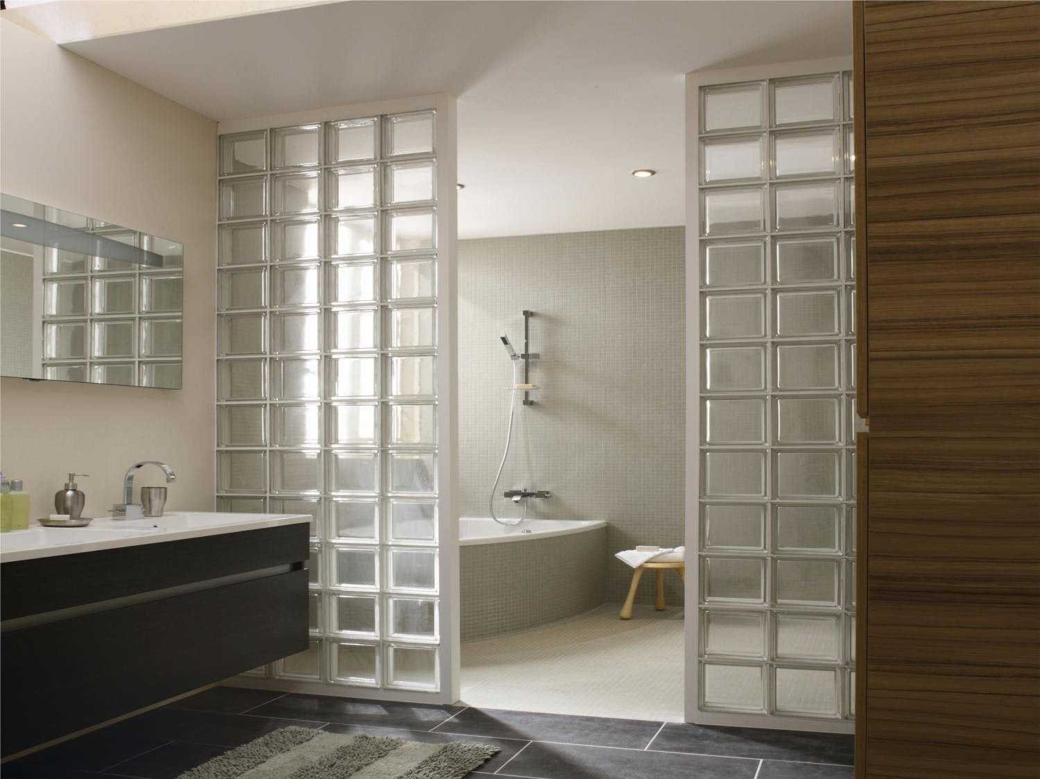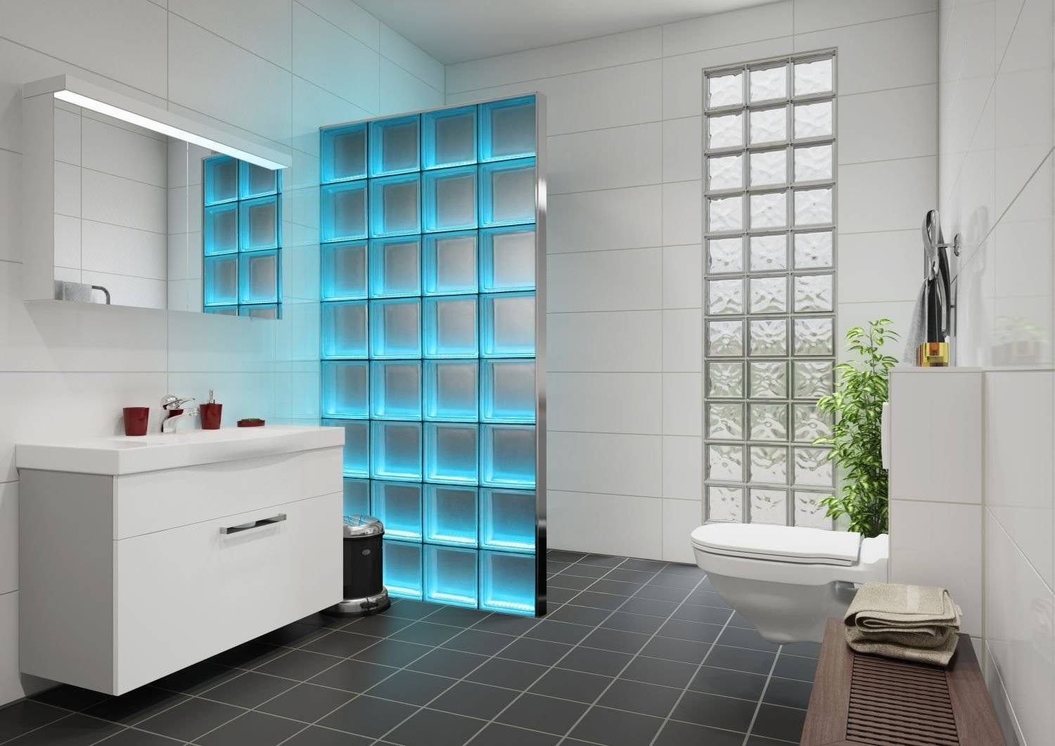 Стеклянные блоки для перегородок в ванной