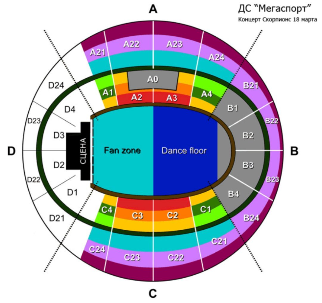 Мегаспорт Арена схема секторов