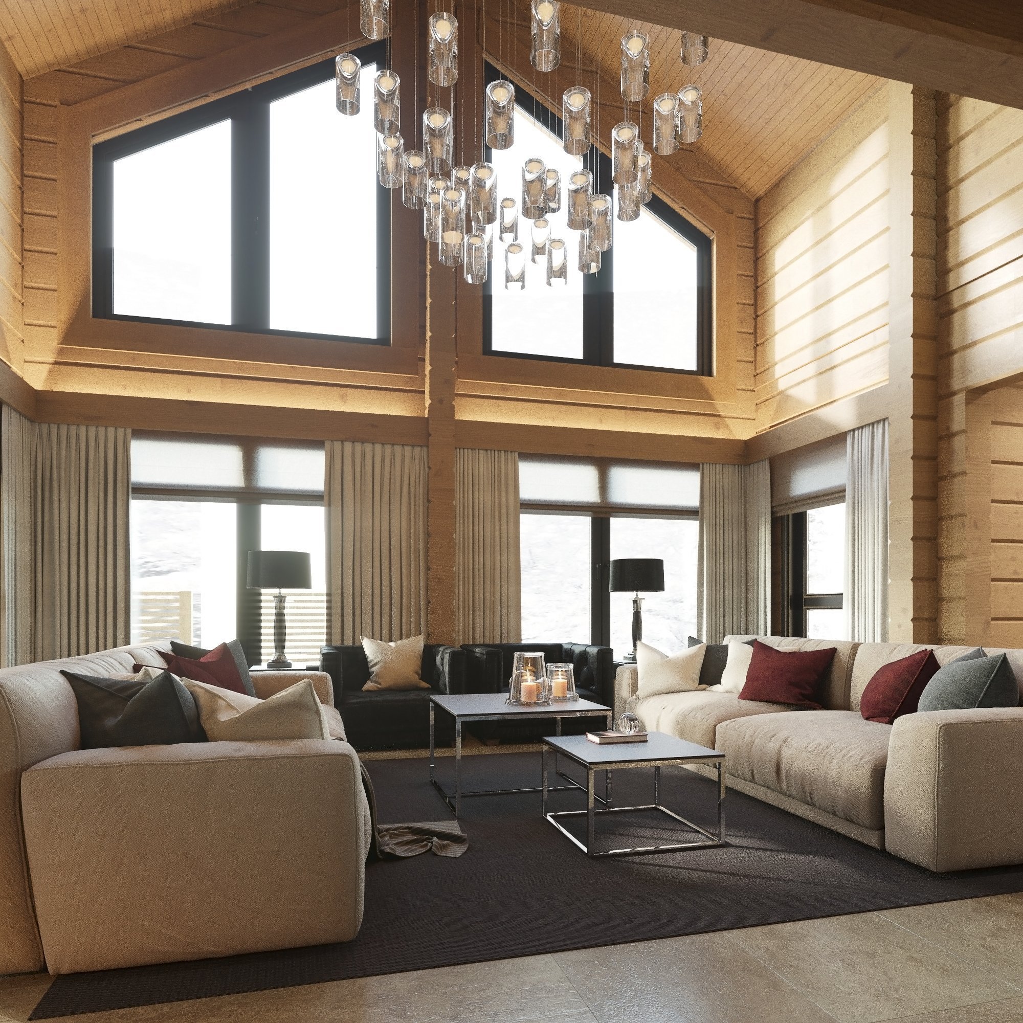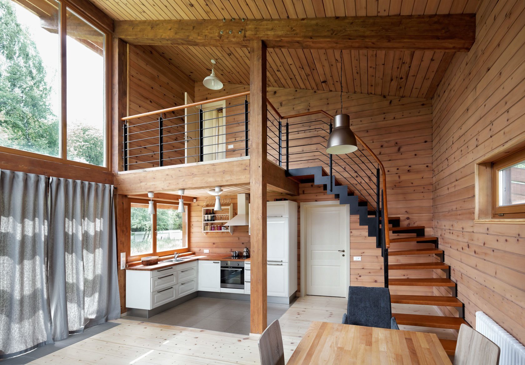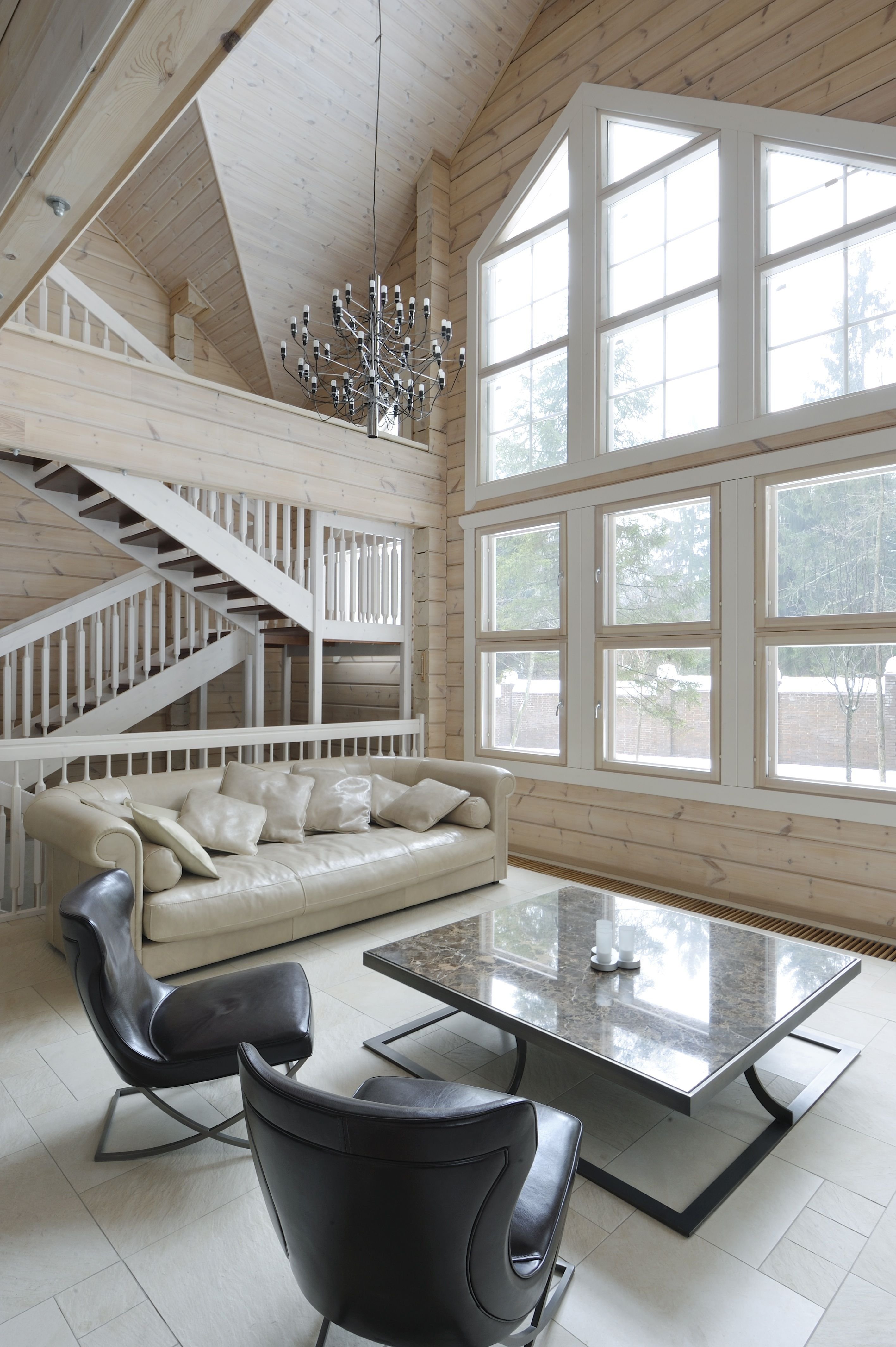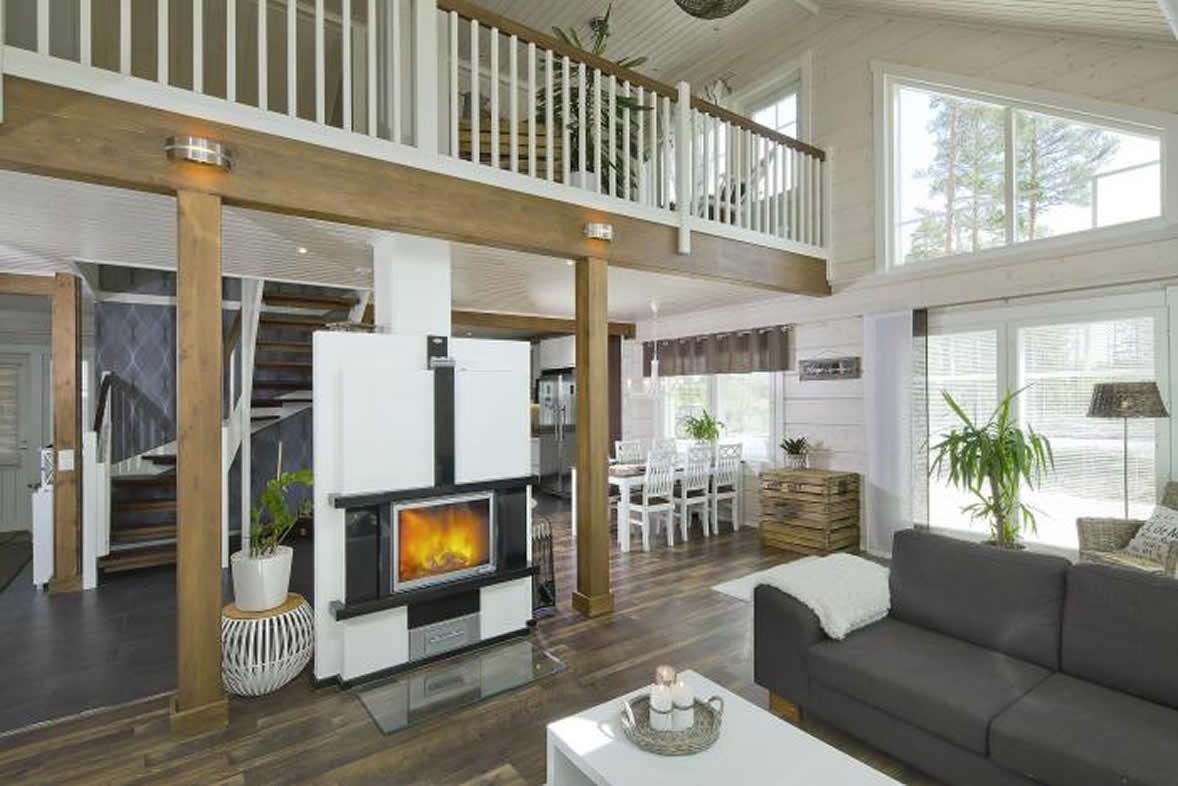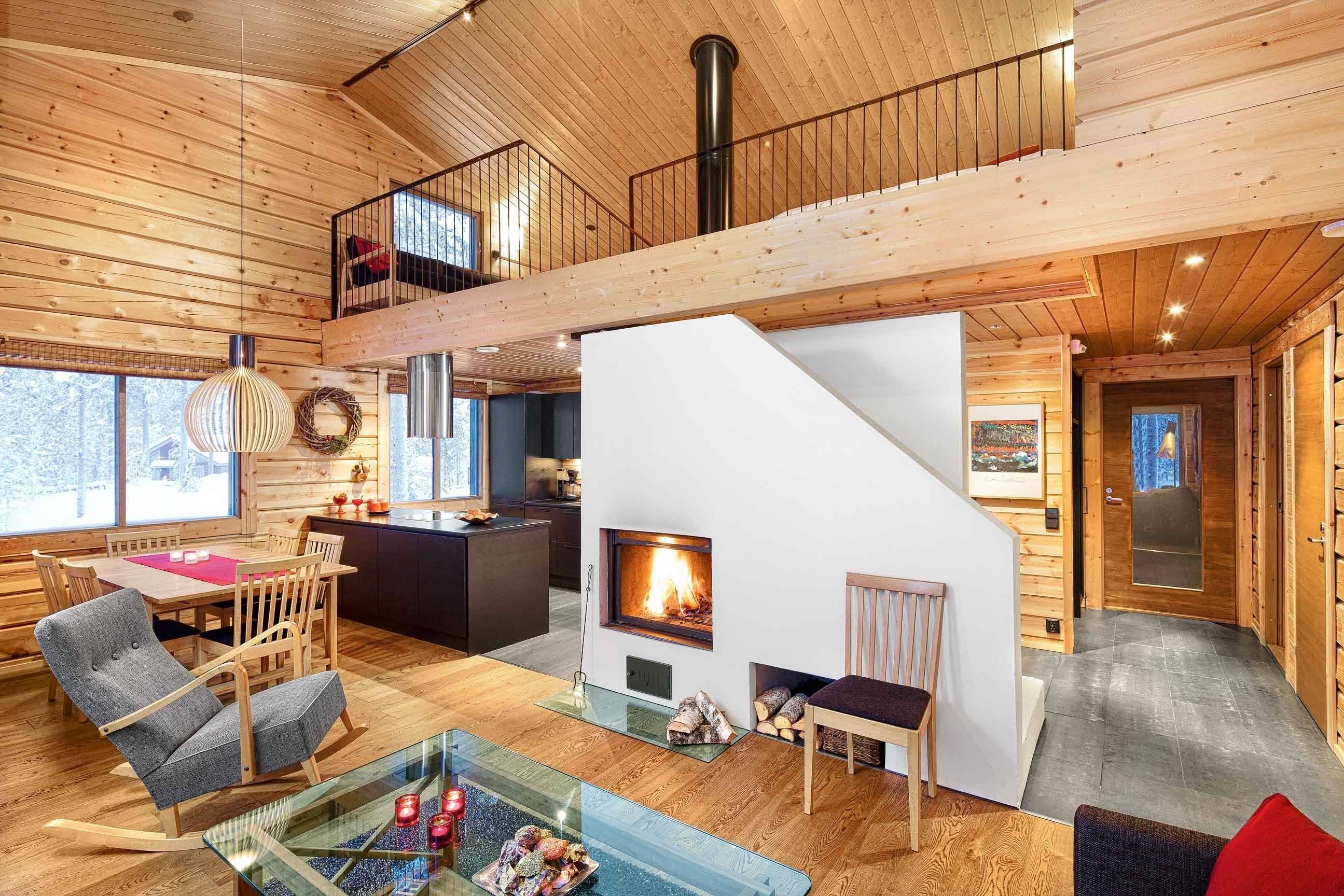 Интерьеры в домах из клееного бруса в скандинавском стиле