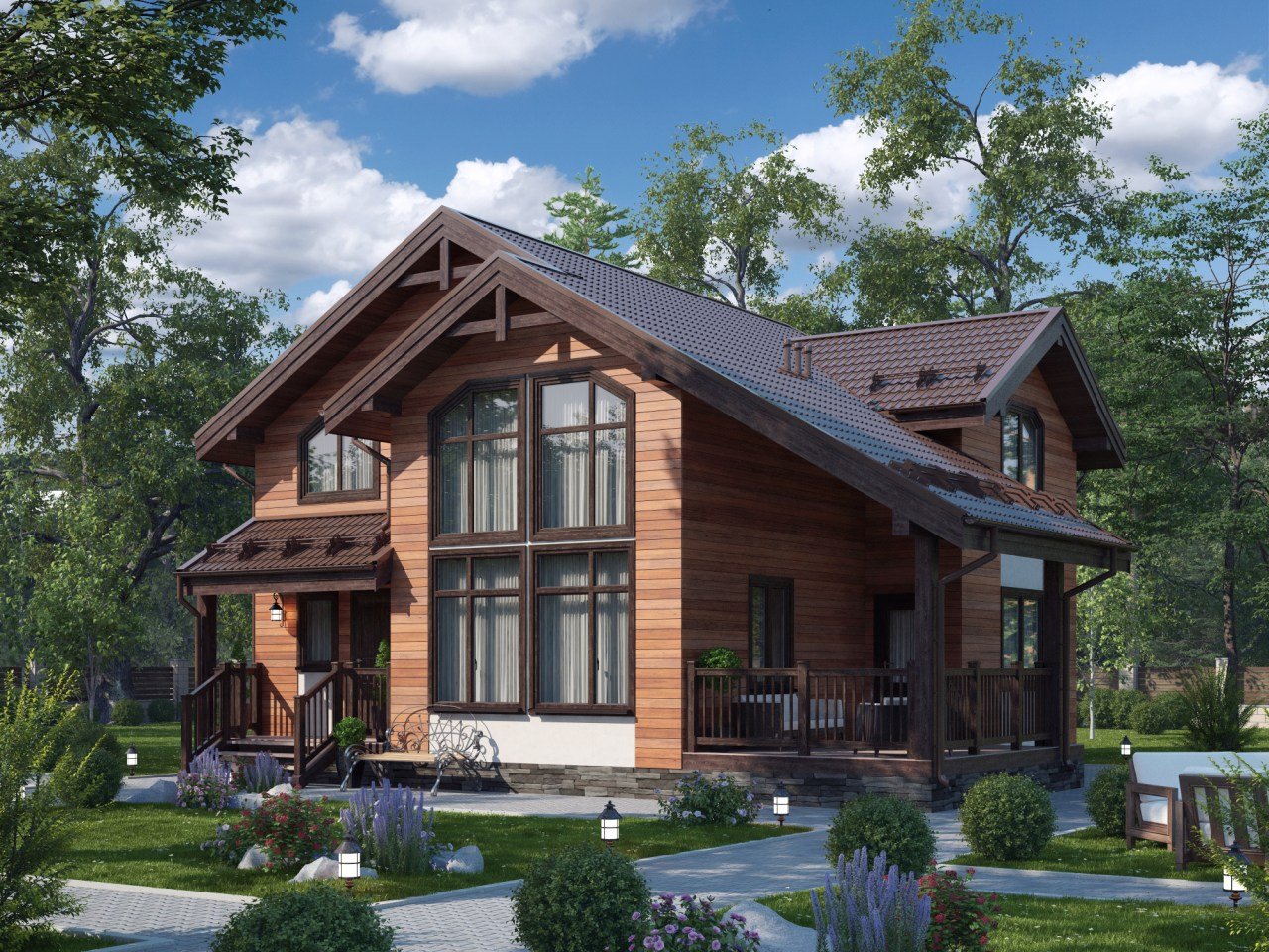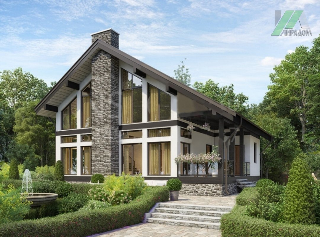 Дом с мансардой и витражными окнами