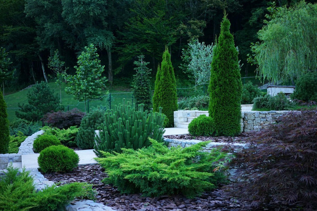Ландшафтный дизайн с туями и можжевельником