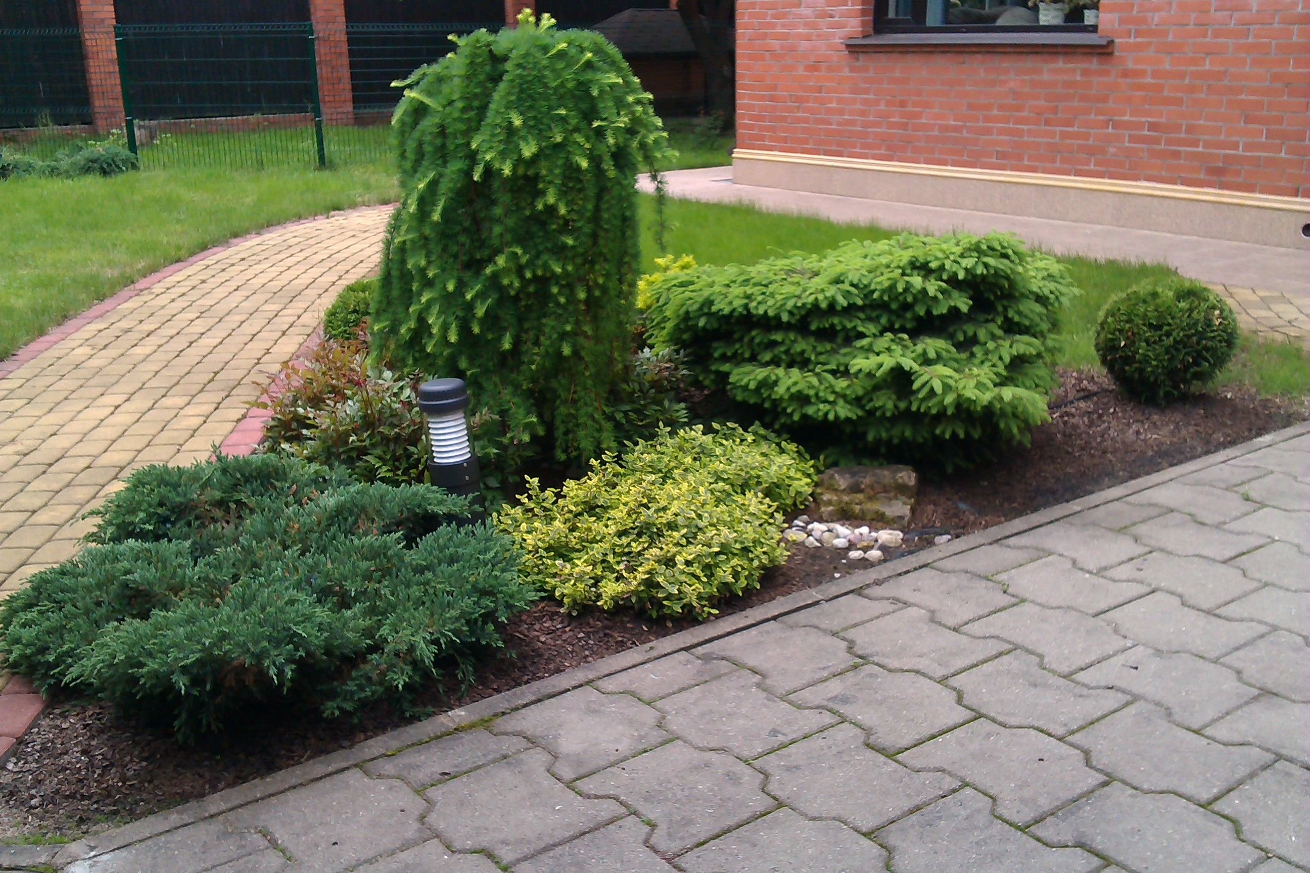 Ель Коника, можжевельник, спирея