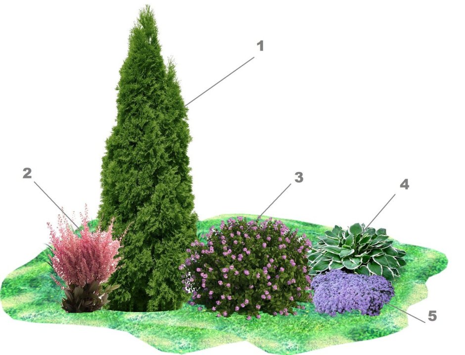 Клумба туя Хоста можжевельник