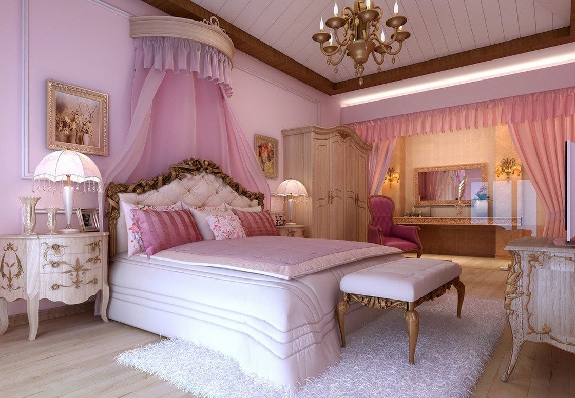 Шикарная розовая спальня
