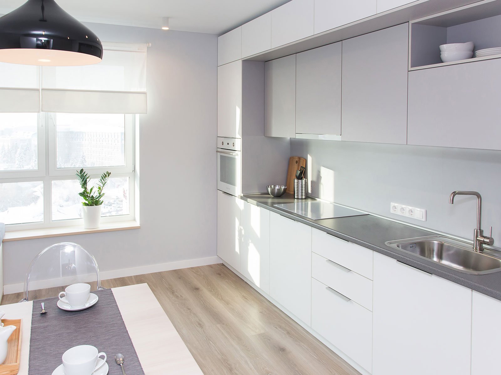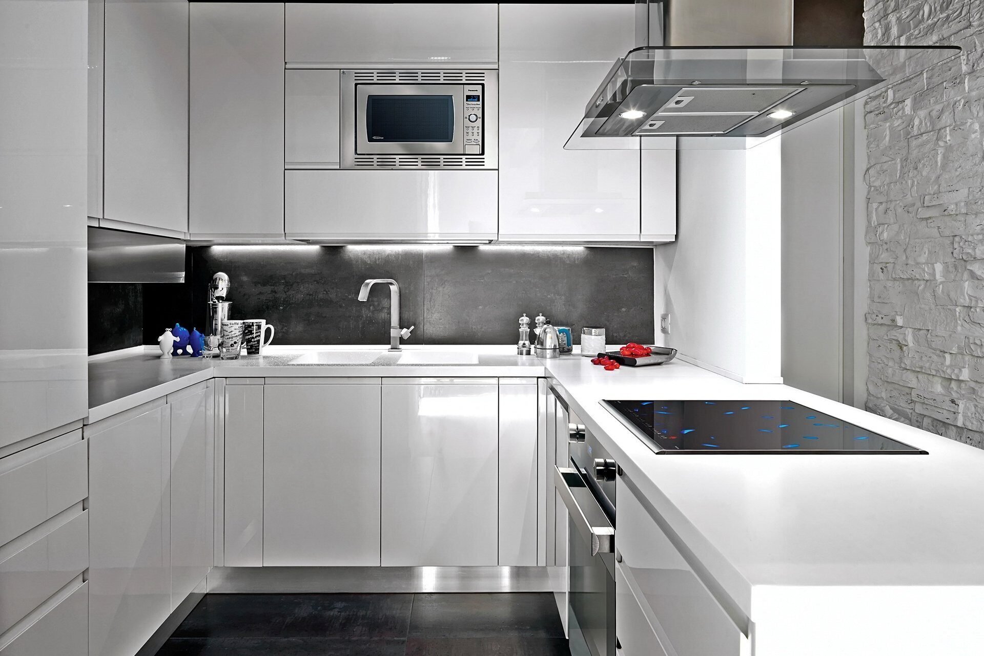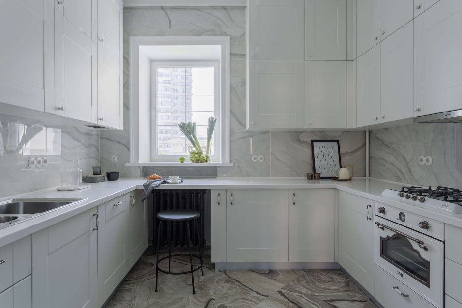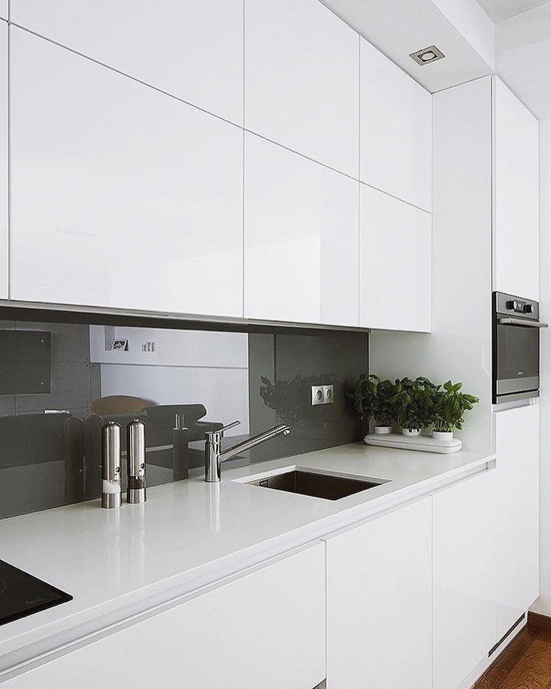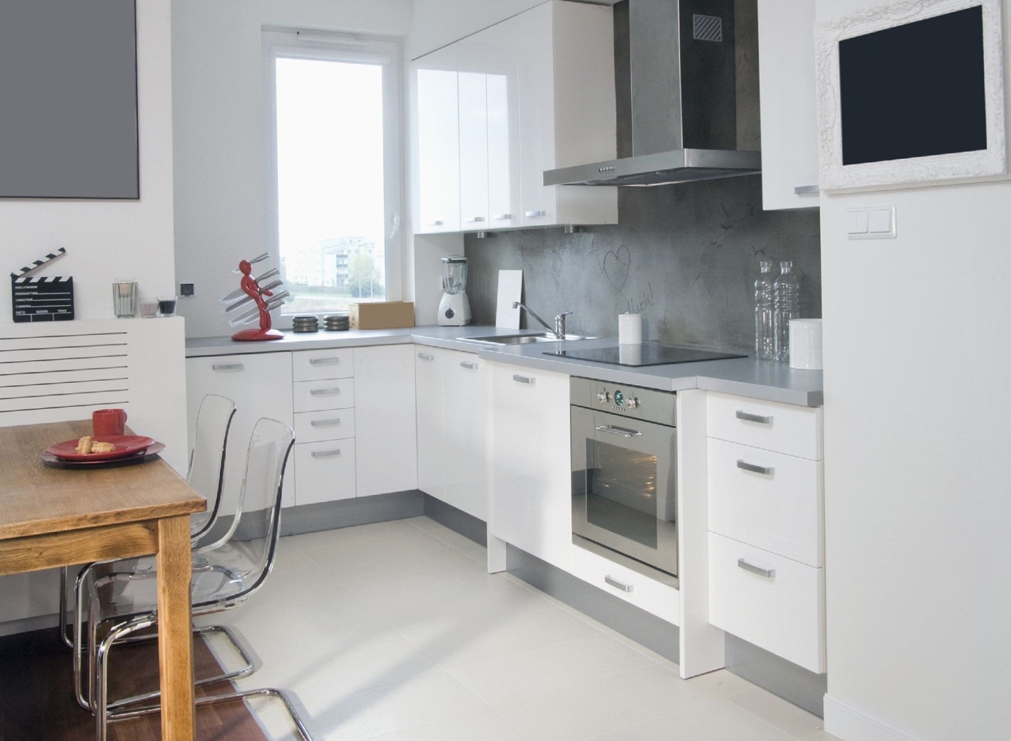Комментируют Белая кухня с серой столешницей в интерьере: