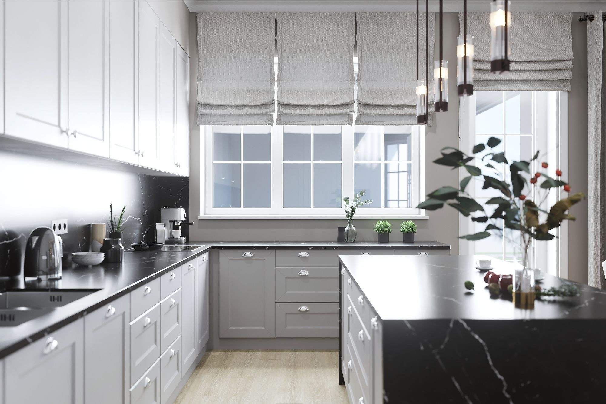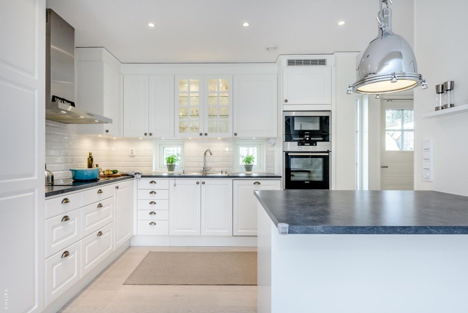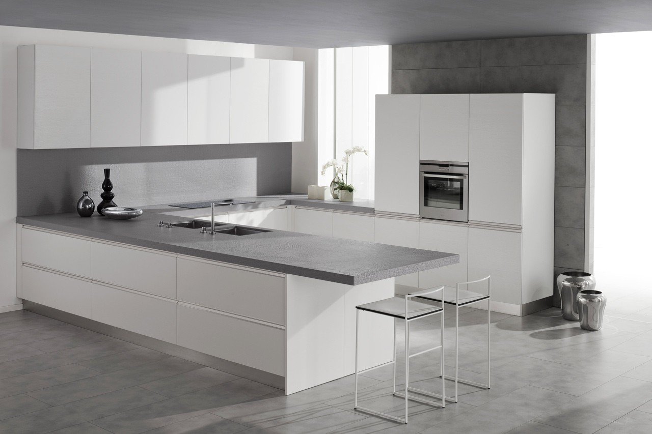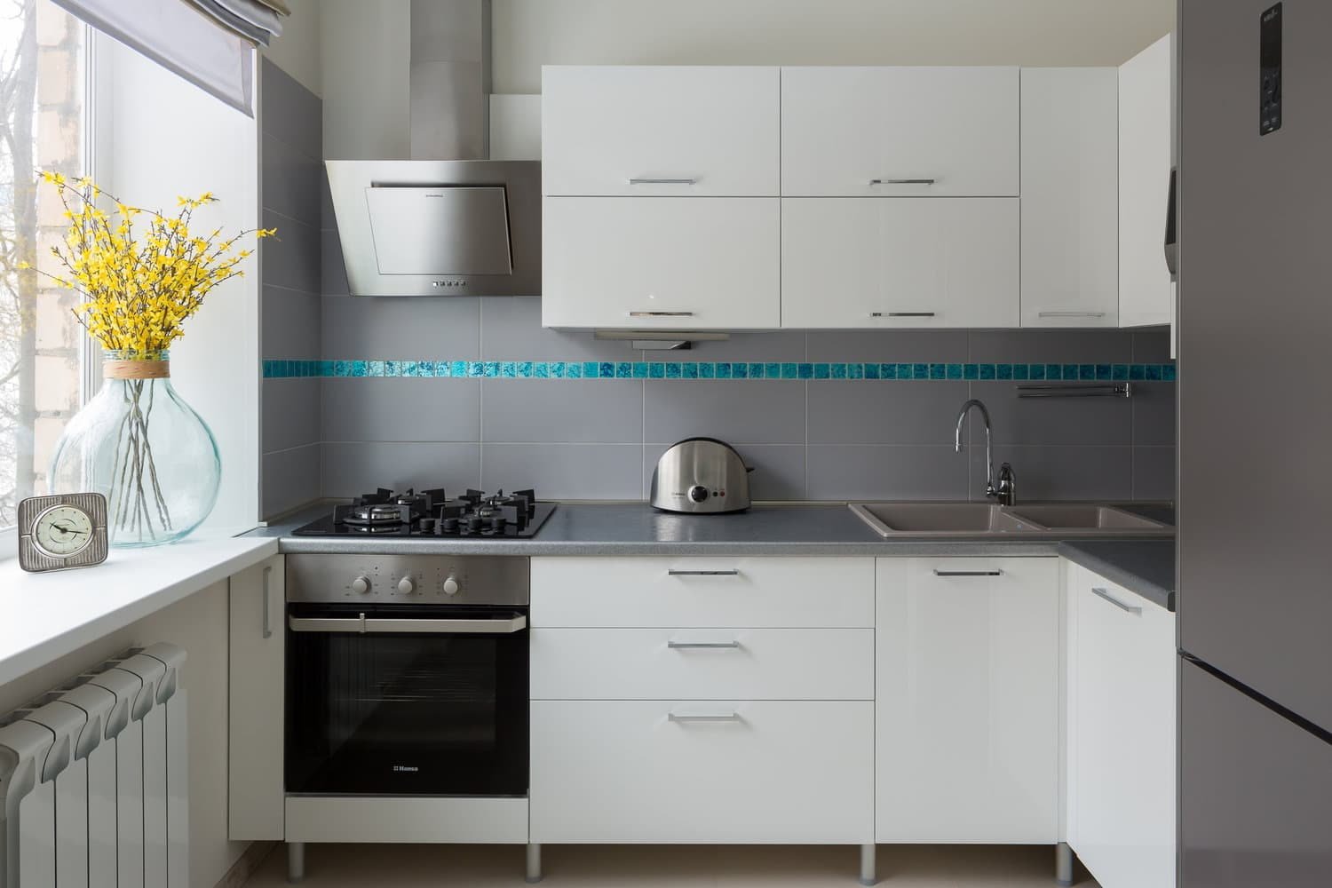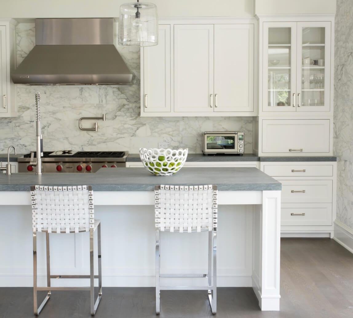 Комментируют Белая кухня с серой столешницей в интерьере: