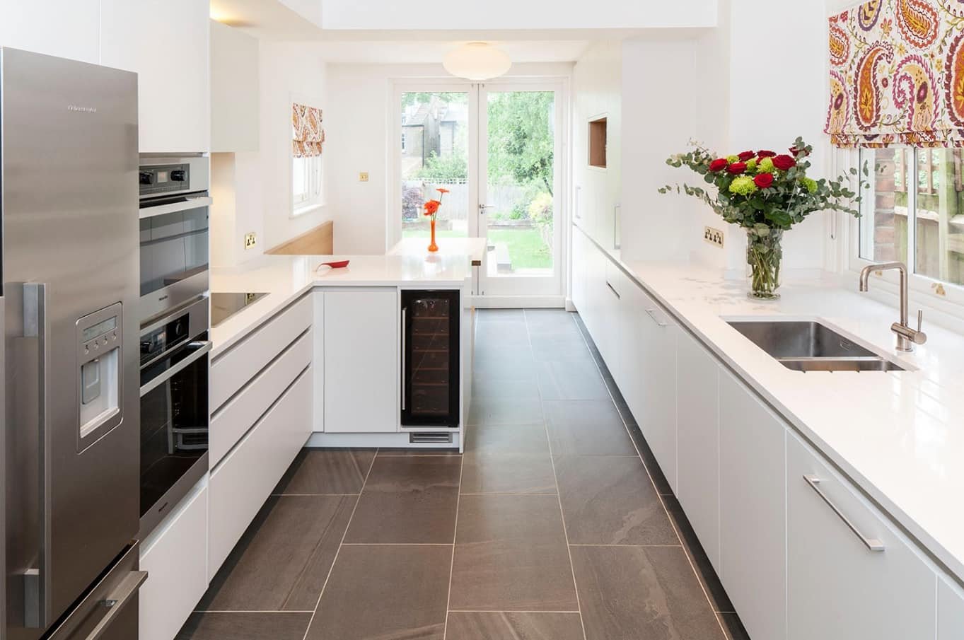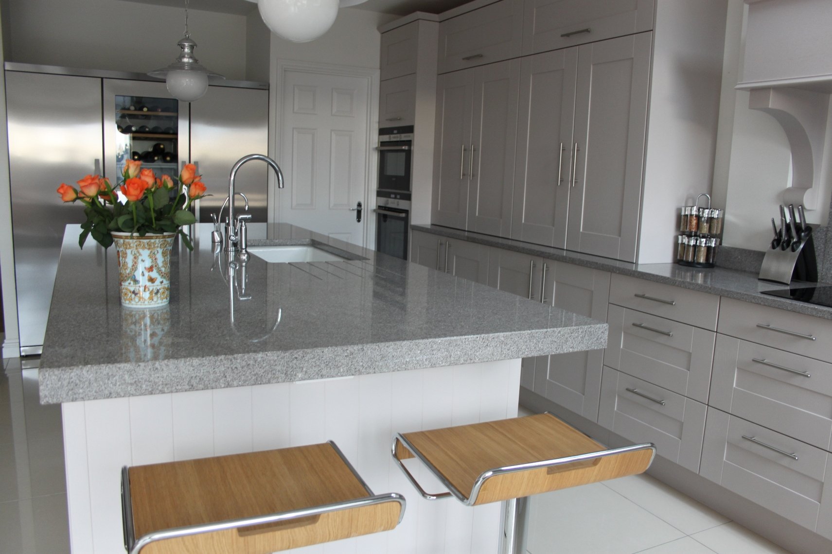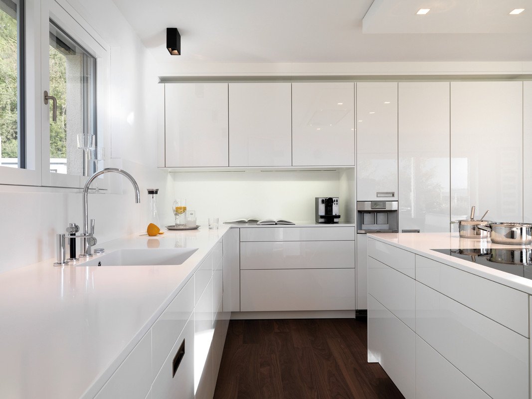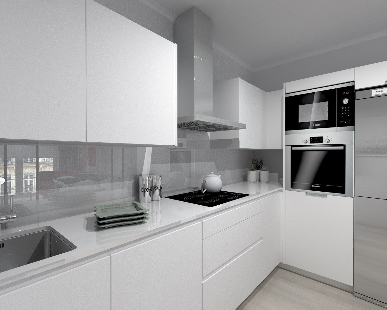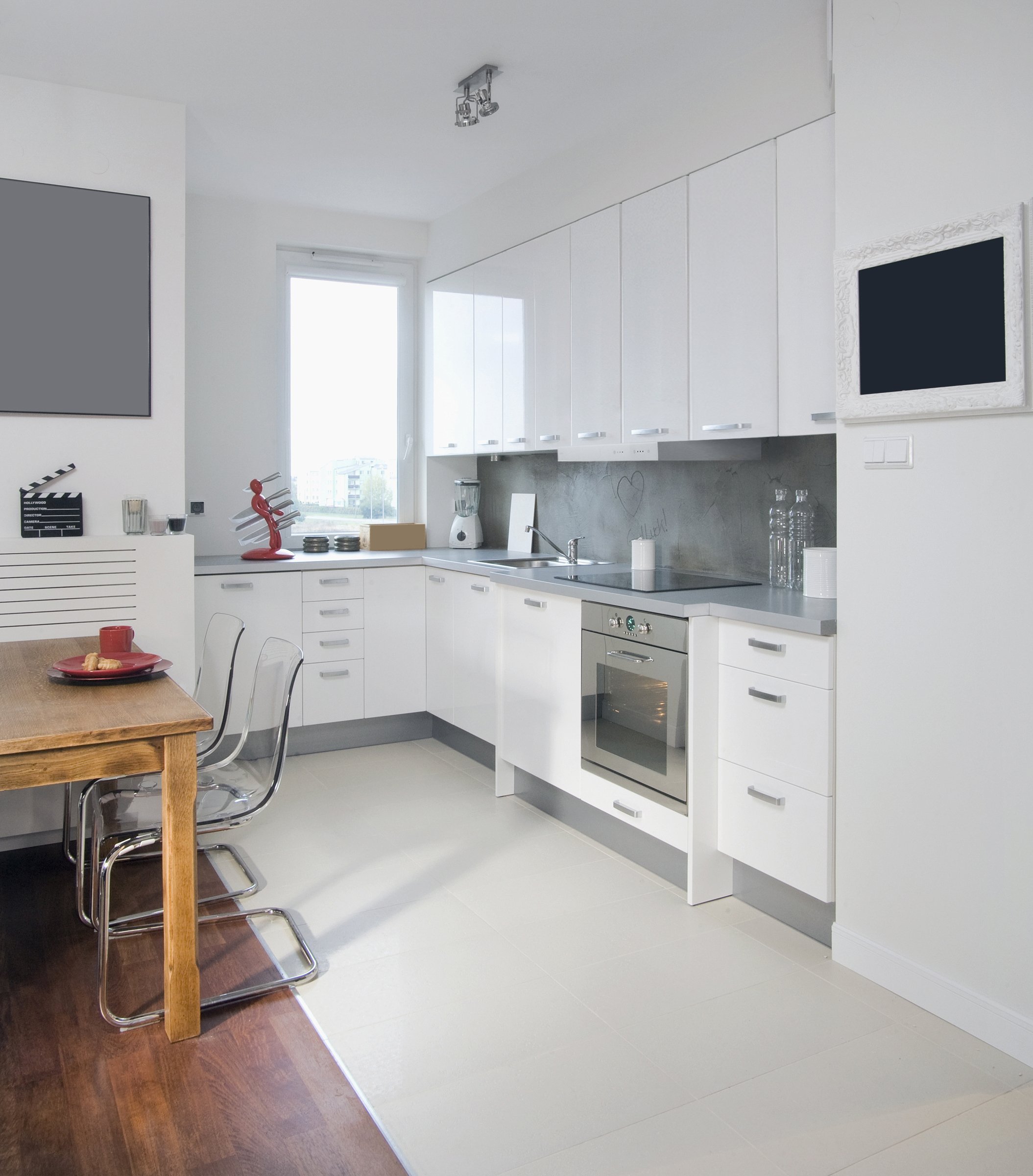 Комментируют Белая кухня с серой столешницей в интерьере:
