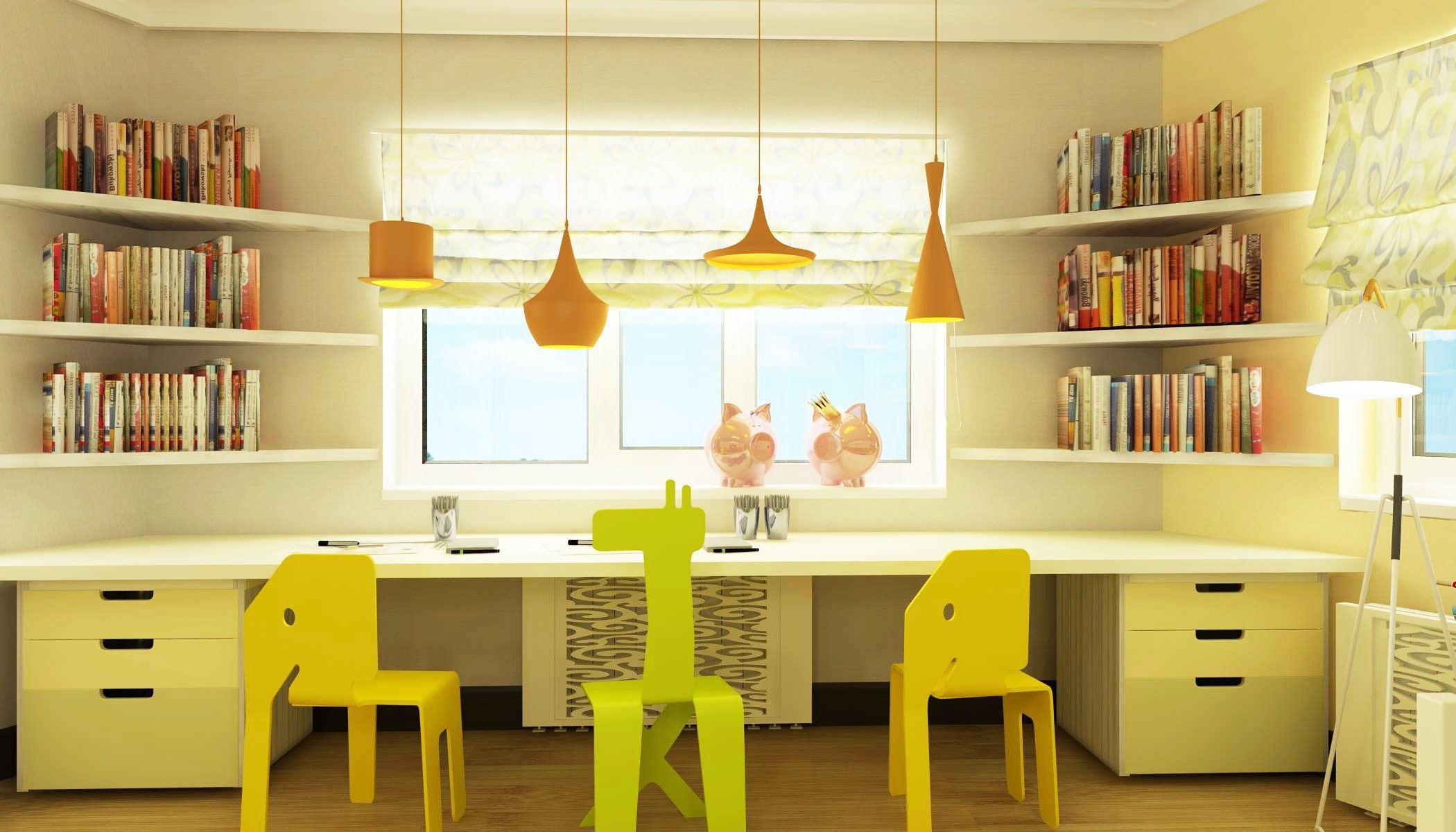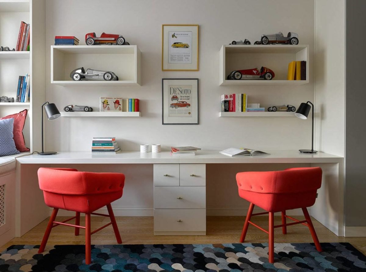 Рабочая зона в детской для двоих
