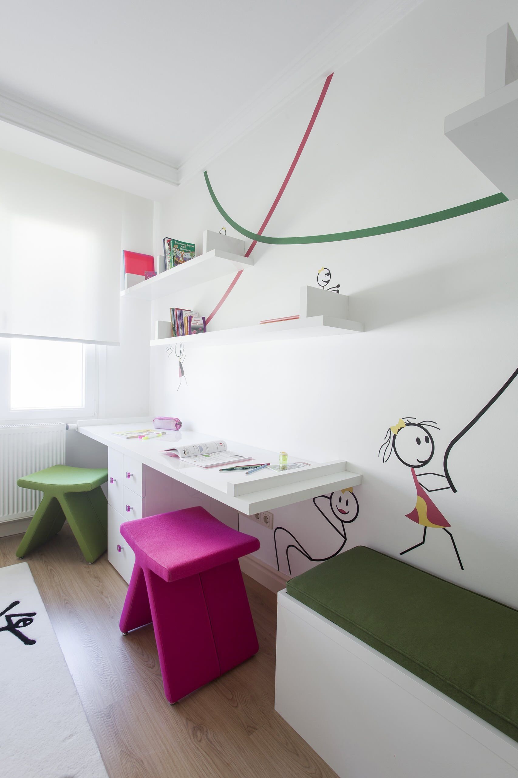 Стол вдоль окна в детской