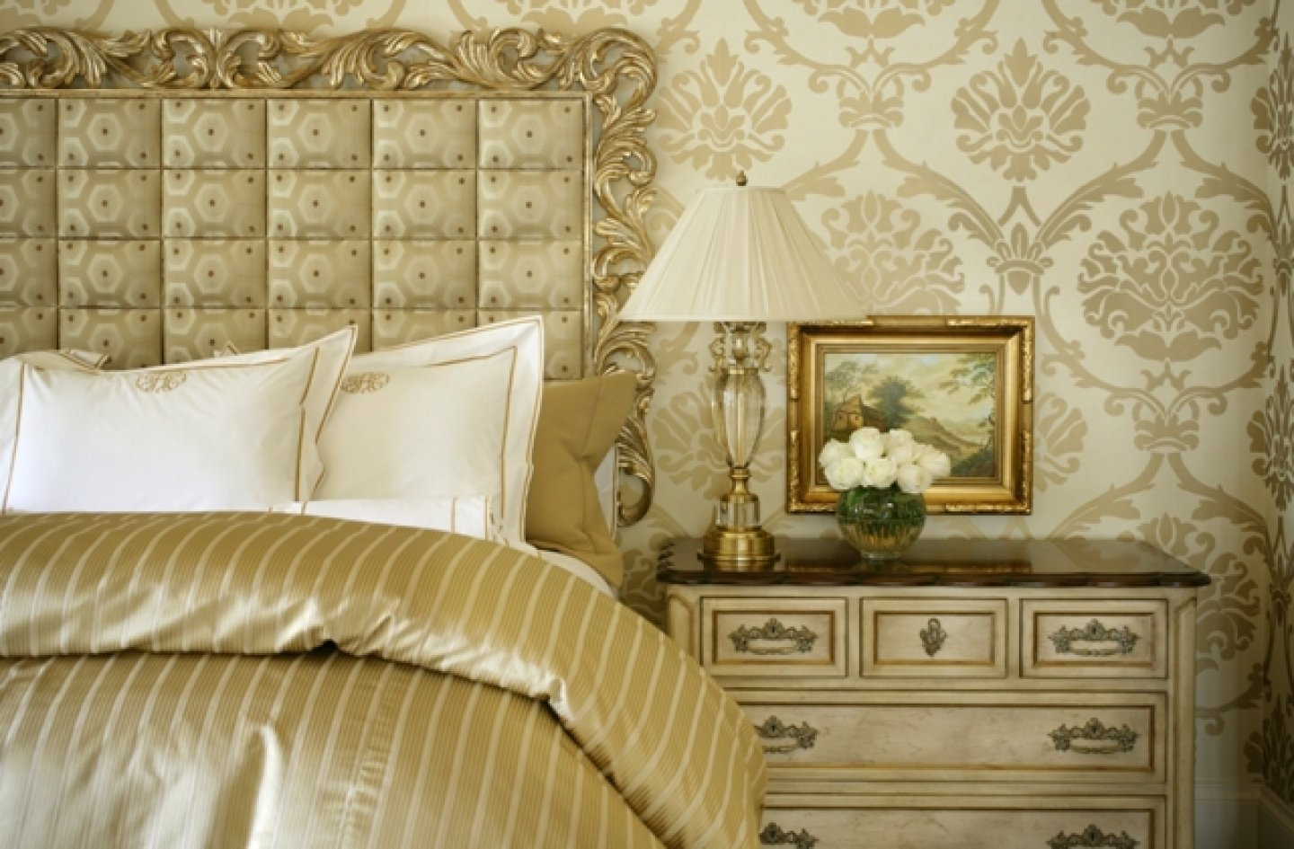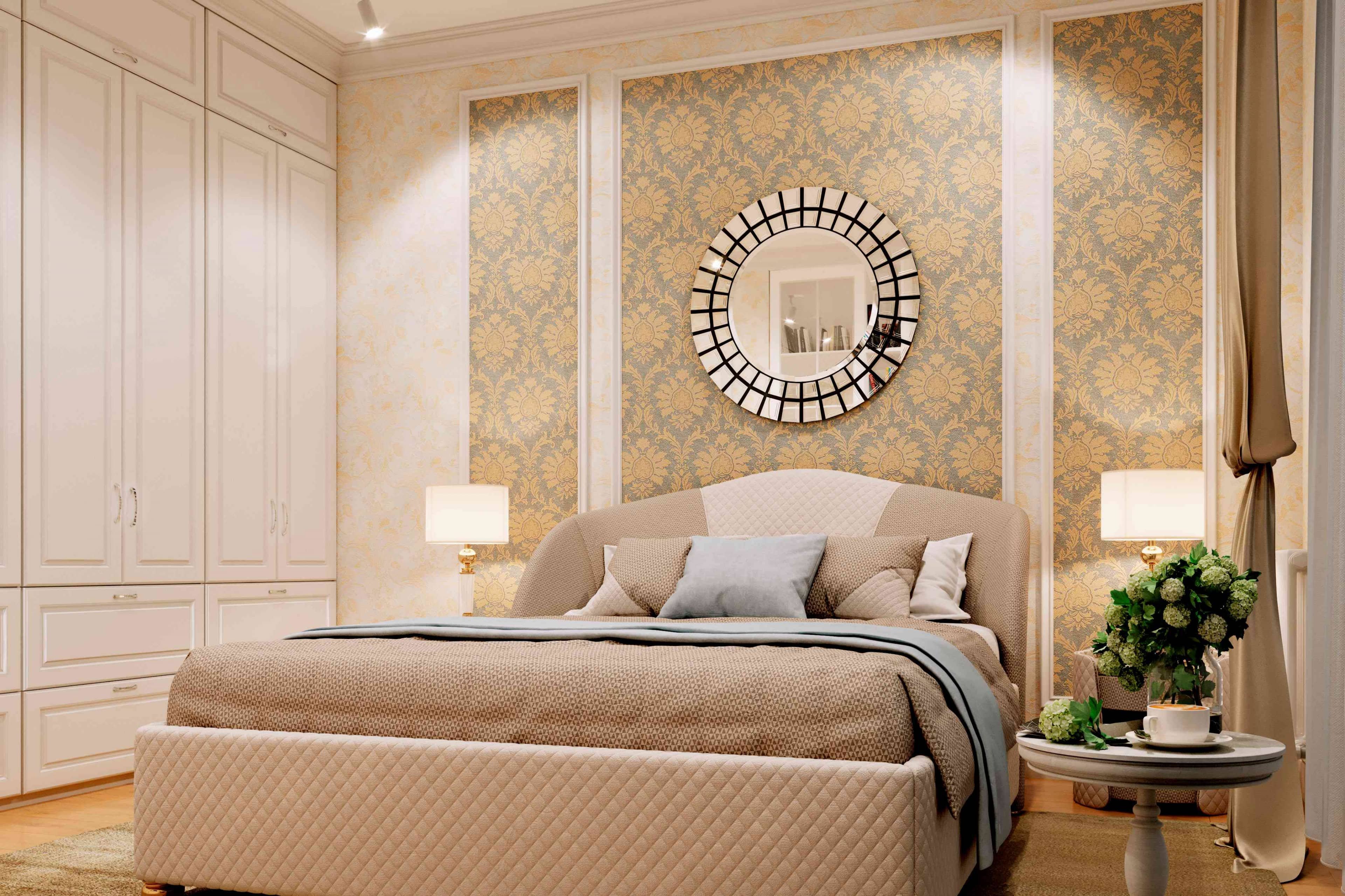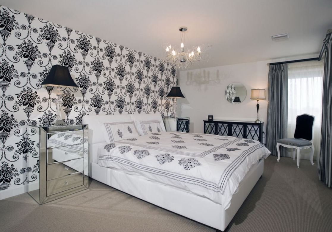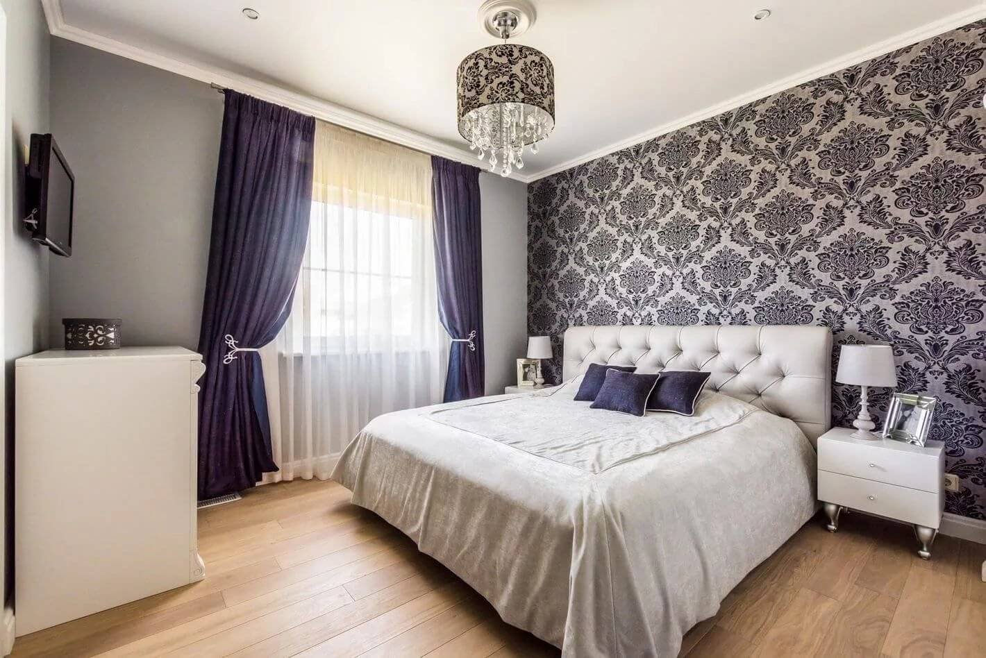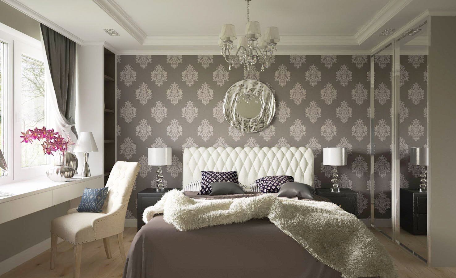 Варианты спальни с обоями Дамаск в стиле Минимализм