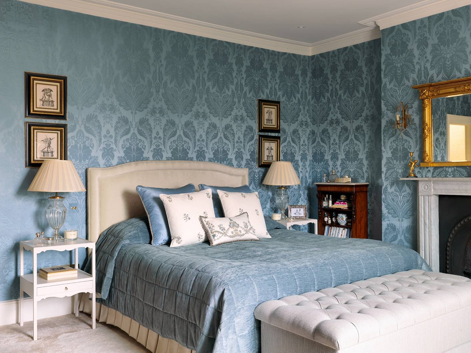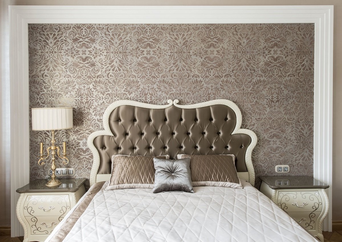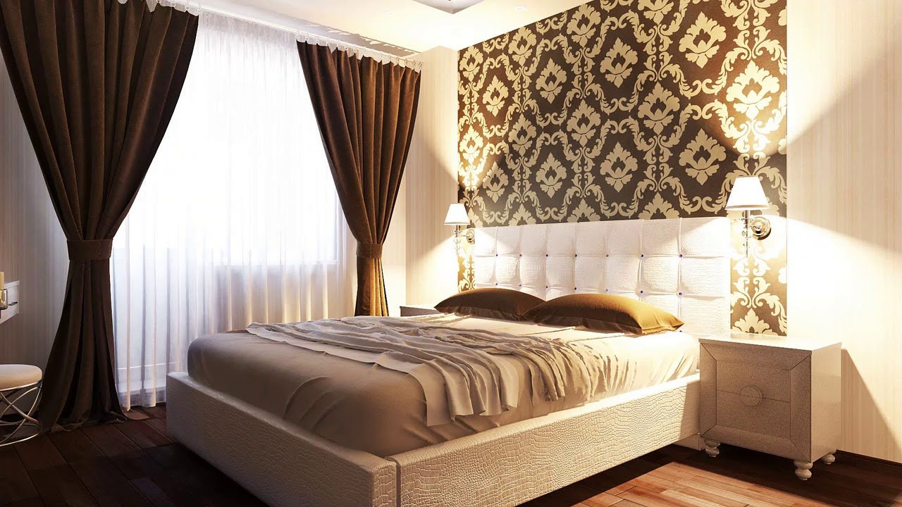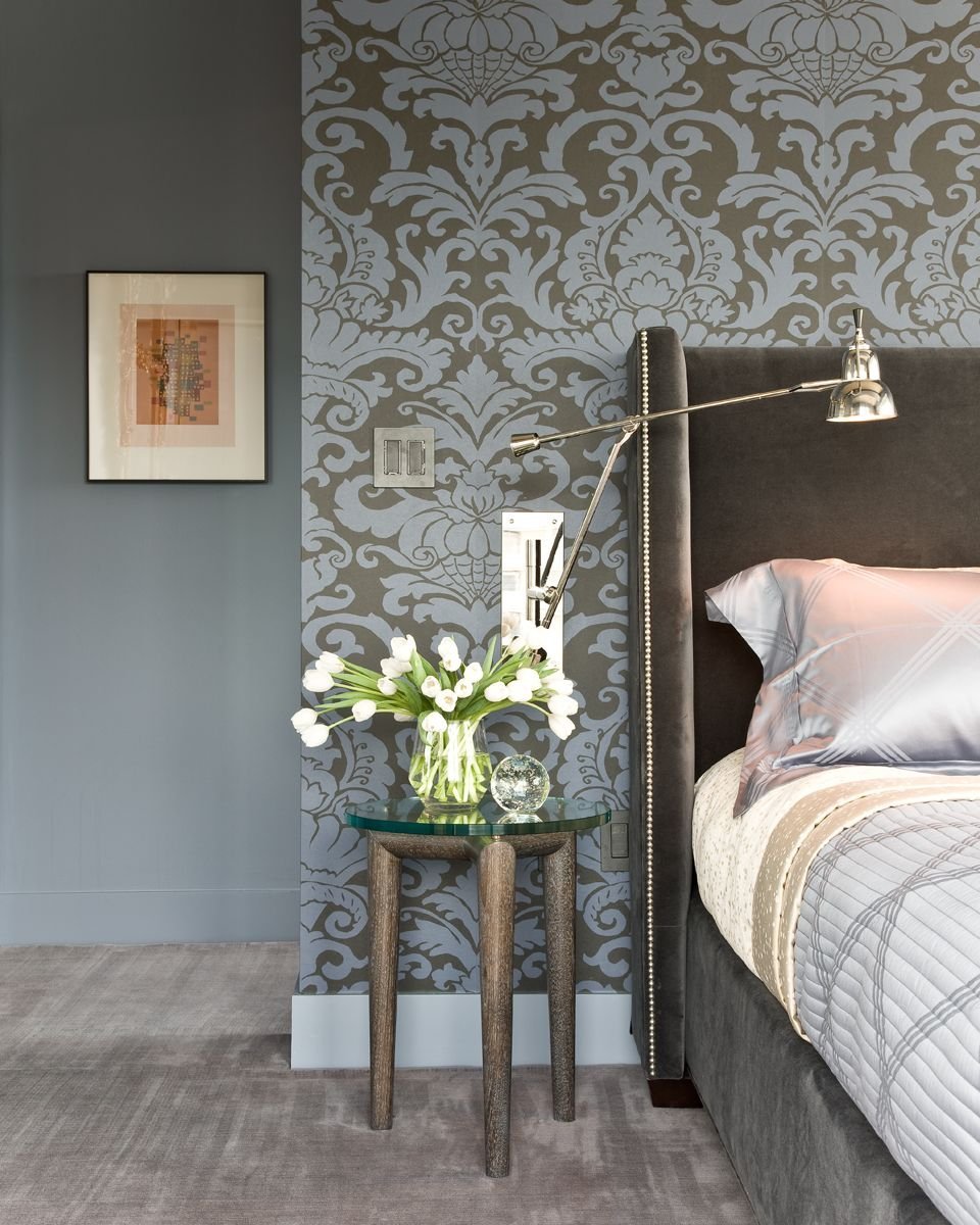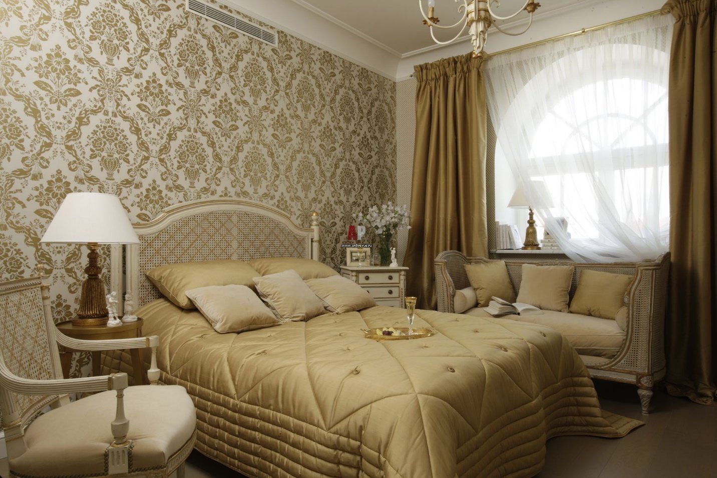 Варианты спальни с обоями Дамаск в стиле Минимализм